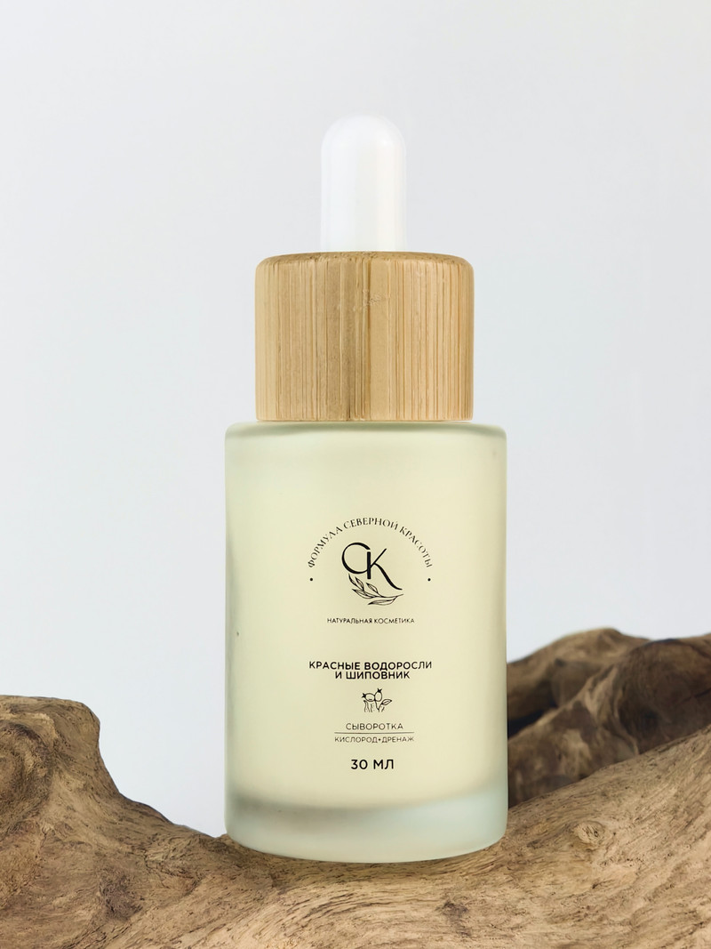 Инновационная сыворотка на основе биоактивных экстрактов красных водорослей и шиповника для комплексного ухода. Формула интенсивно увлажняет, стимулирует клеточное обновление и обеспечивает мощный антиоксидантный эффект для сияния и молодости кожи.