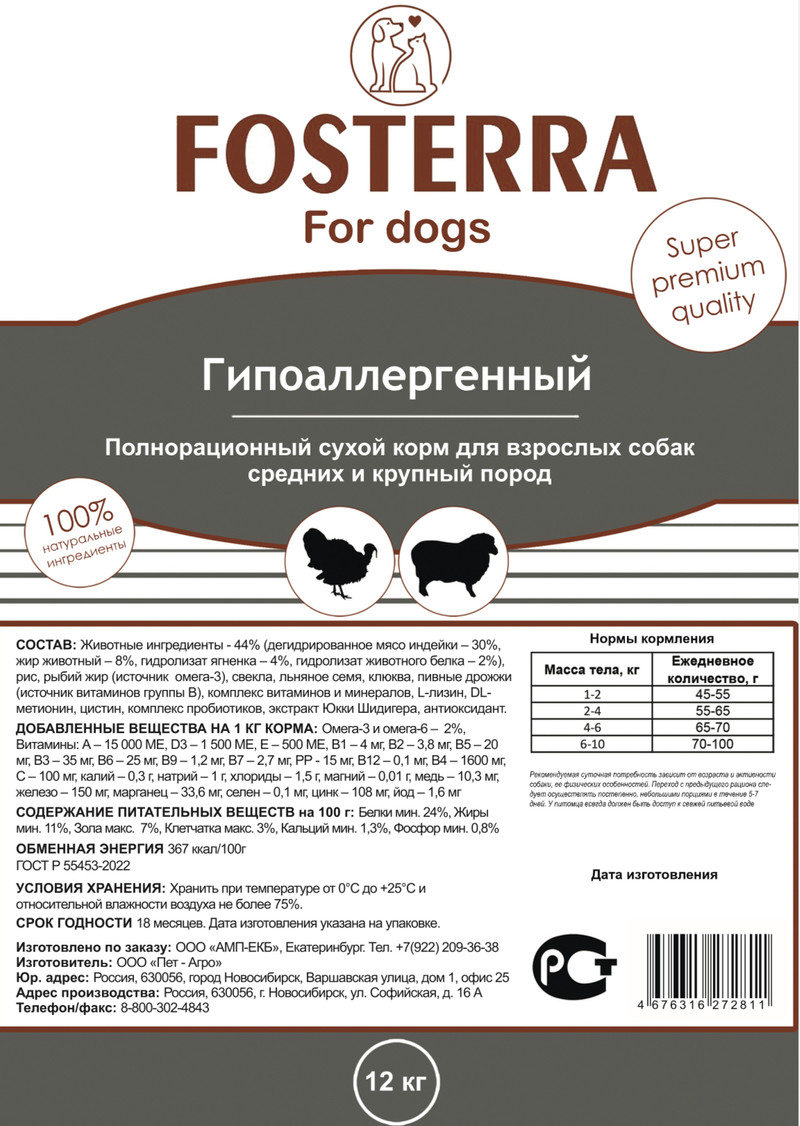 Чтобы купить Гипоаллергенный корм для собак средних и крупных пород Fosterra 12 кг с Ягненком 4676316272811 оптом по цене 4600 руб., свяжитесь с поставщиком. Компания поставщик — Fosterra (ИП «Попенов А.М») из города Екатеринбург (Свердловская область). Минимальная партия 5 шт. Доставка возможна самовывоз, транспортной компанией, автомобилем, курьером, авиатранспортом, железной дорогой. Способы оплаты: наличными, безналичная оплата, кредитные карты, электронные деньги.