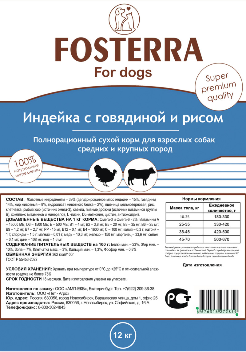 Чтобы купить Сухой корм для Собак средних и крупных пород Fosterra Индейка с говядиной и рисом 4 6 7 6 3 1 6 2 7 2 8 5 9 1 оптом по цене 5900 руб., свяжитесь с поставщиком. Компания поставщик — Fosterra (ИП «Попенов А.М») из города Екатеринбург (Свердловская область). Минимальная партия 5 шт. Доставка возможна самовывоз, транспортной компанией, автомобилем, курьером. Способы оплаты: наличными, безналичная оплата, кредитные карты, электронные деньги.