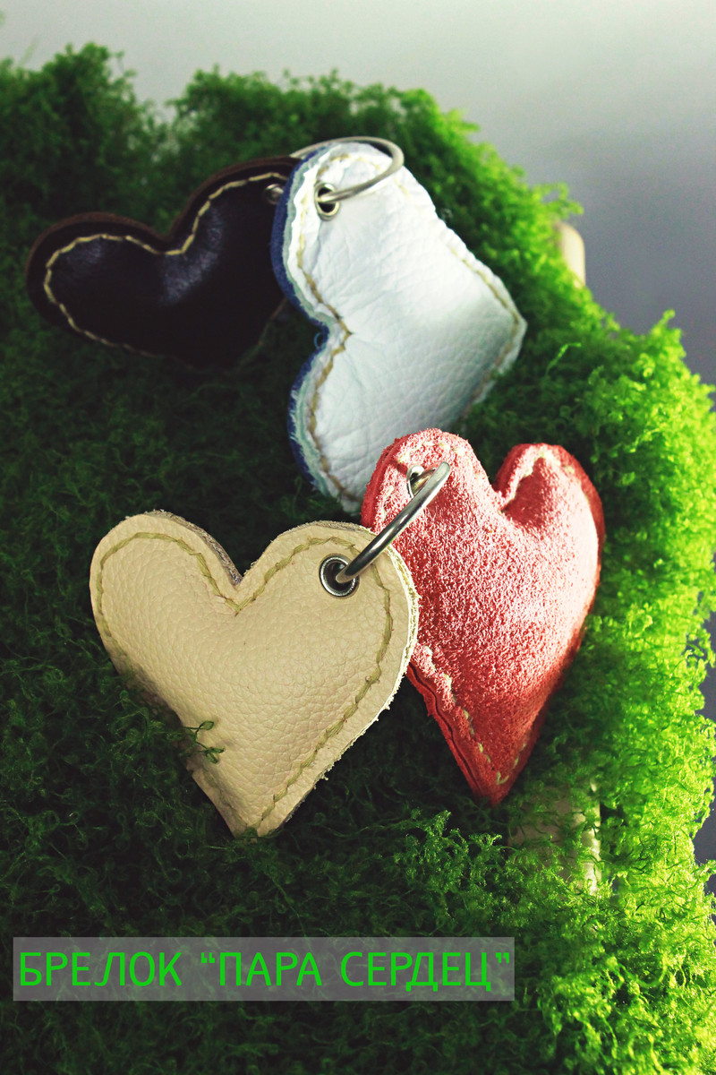Пара милых сердец одно 7,5см, второе 6,5 см выполнены из натуральной кожи, ручная работа. Разные цвета.