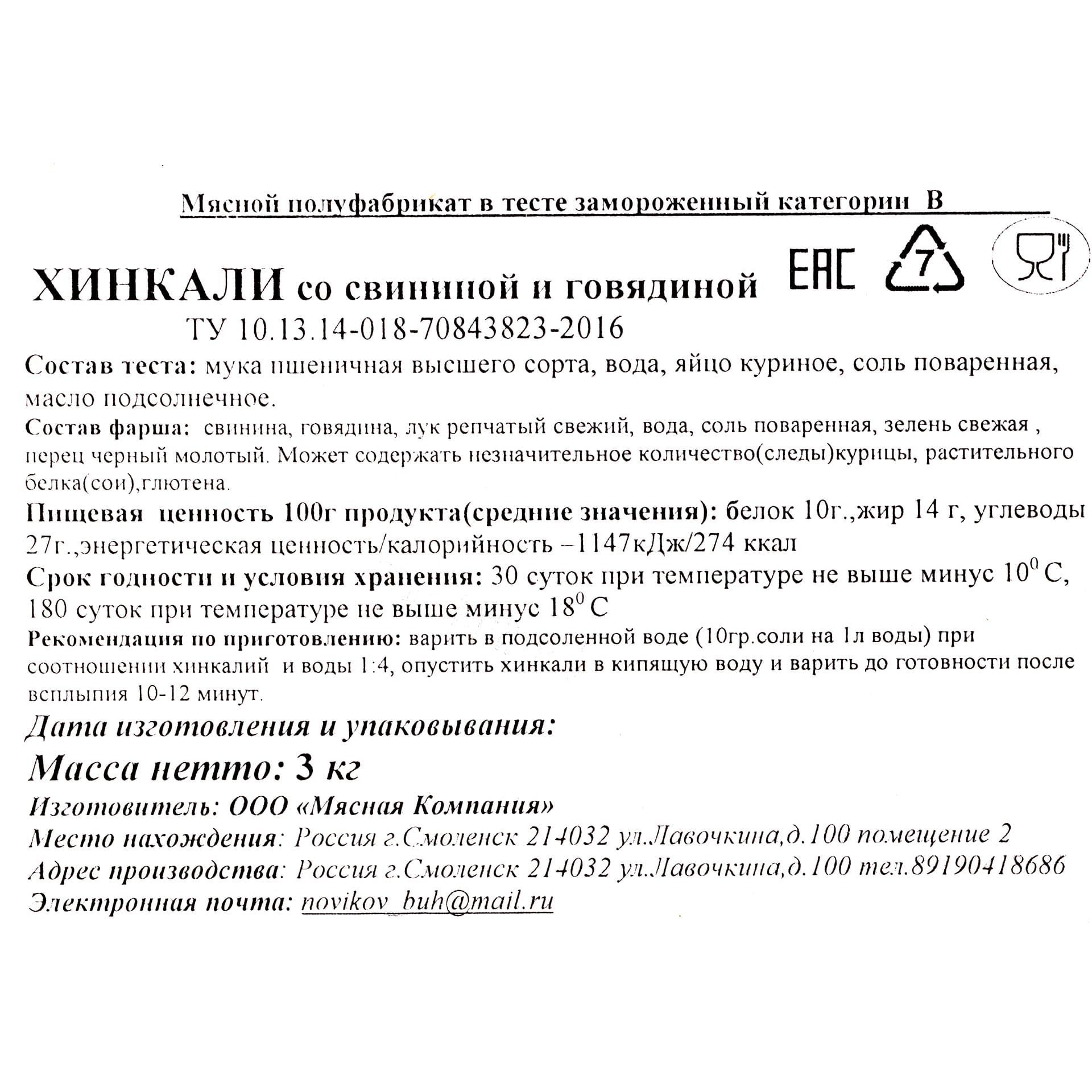 Чтобы купить Хинкали со свининой и говядиной полуфабрикат замороженный Смоленский мастер 3 кг оптом по цене 1671 руб., свяжитесь с поставщиком. Компания поставщик — Фростопт (ООО «ЛЕДКОФФ») из города Москва. Минимальная сумма оптового заказа: 6000 руб. Доставка возможна самовывоз, транспортной компанией, автомобилем. Способы оплаты: наличными, безналичная оплата, кредитные карты, электронные деньги.