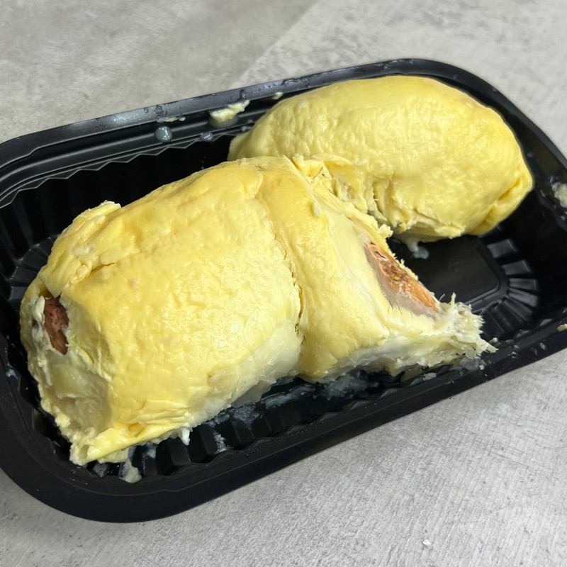 Дуриан Описание: Крупный тропический фрукт с толстой колючей кожурой. Внутри — мягкая, кремовая мякоть жёлтого цвета, разделённая на дольки с крупными косточками. Один из самых известных и обсуждаемых фруктов в мире благодаря своему аромату. Вкус: Очень насыщенный, сливочно-сладкий. Во вкусе сочетаются ноты ванильного крема, заварного пирожного, орехов и карамели. Текстура густая и маслянистая, буквально тает во рту. Интересные факты: • Дуриан называют “королём фруктов” в Юго-Восточной Азии • Несмотря на резкий запах, вкус ценится гурманами по всему миру • Запах дуриана запрещён в отелях, транспорте и аэропортах многих стран • Считается очень питательным фруктом и даёт длительное чувство сытости.