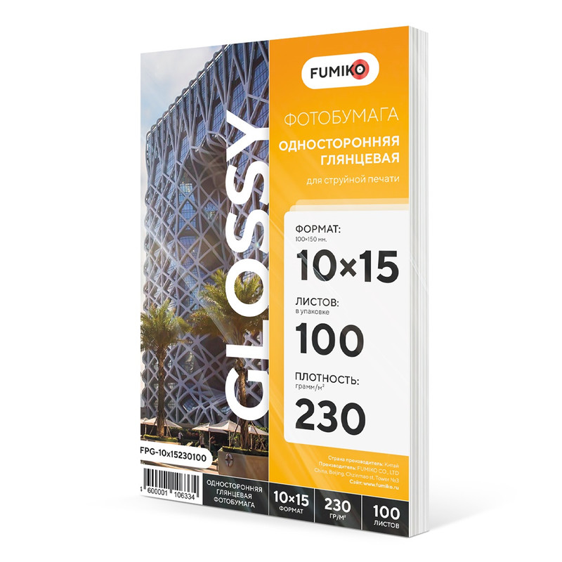 Глянцевая односторонняя фотобумага FUMIKO для печати на струйных принтерах. Упаковка содержит 100 листов фотобумаги формата 10х15 с плотностью 230 г/м2. Такая фотобумага подойдет для печати фотографий, флаеров, открыток, визиток и других полиграфических картинок. Максимальное разрешение 5760 dpi позволит высоко детализировать печать.