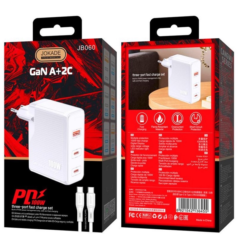 Чтобы купить Зарядное устройство Jokade JB059 PD100W+QC3.0 3А белое 6921042136448 оптом по цене 1100 руб., свяжитесь с поставщиком. Компания поставщик — FUMIKO Opt (ИП «Ковалевский А.В.») из города Омск (Омская область). Минимальная партия 5 шт. Доставка возможна самовывоз, транспортной компанией. Способы оплаты: наличными, безналичная оплата.