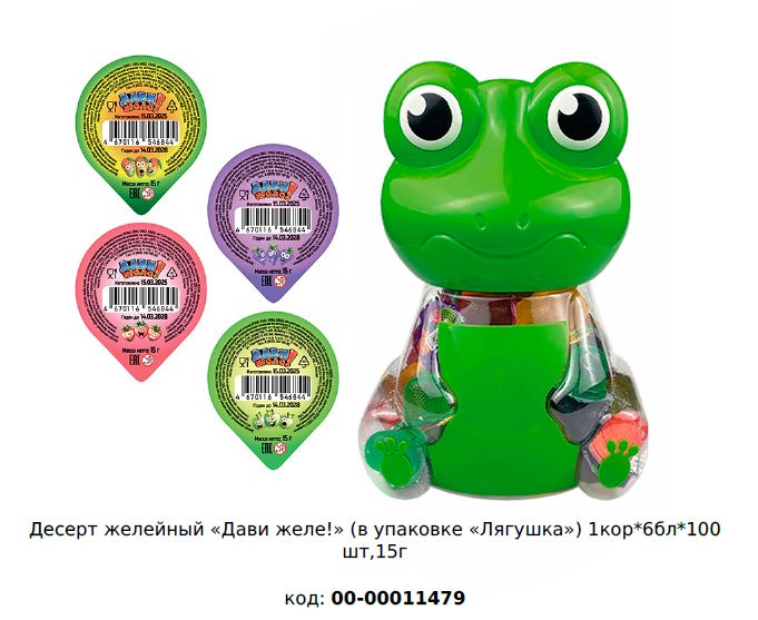 Десерт желейный “Дави желе!” (в упаковке “Лягушка”) 1кор*6бл*100