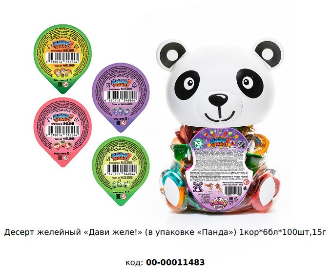 Десерт желейный “Дави желе!” (в упаковке “Панда”) 1кор*6бл*100шт, 15 г