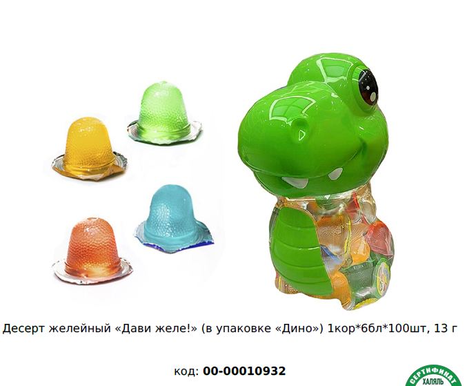 Десерт желейный “Дави желе!” (в упаковке “Дино”) 1кор*6бл*100шт, 13 г