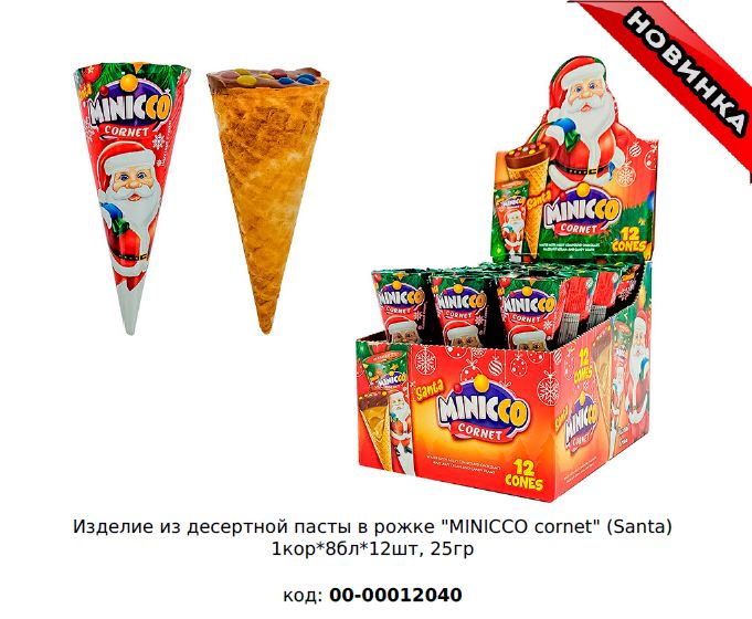 Изделие из десертной пасты в рожке “MINICCO cornet” (Santa)