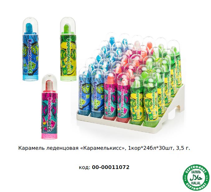 Чтобы купить Карамель леденцовая Fun Candy Lab ХАЛЯЛЬ "Карамелькисс" 00-00011072 оптом по цене по запросу, свяжитесь с поставщиком. Компания поставщик — Fun Candy Lab (ООО «СФЕРА») из города Москва. Минимальная сумма оптового заказа: 50000 руб. Минимальная партия 30 шт. Доставка возможна самовывоз, транспортной компанией, автомобилем, железной дорогой. Способы оплаты: наличными, безналичная оплата.