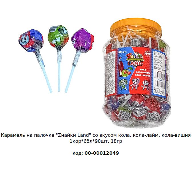 Чтобы купить Карамель на палочке Fun Candy Lab "Zнайки Land" со вкусом кола, кола-лайм, кола-вишня 00-00012049 оптом по цене по запросу, свяжитесь с поставщиком. Компания поставщик — Fun Candy Lab (ООО «СФЕРА») из города Москва. Минимальная сумма оптового заказа: 50000 руб. Минимальная партия 90 шт. Доставка возможна самовывоз, транспортной компанией, автомобилем, железной дорогой. Способы оплаты: наличными, безналичная оплата.