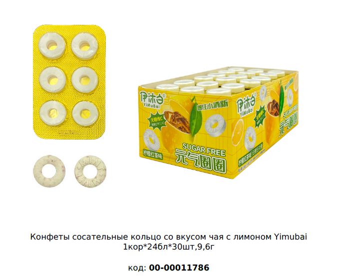 Чтобы купить Конфеты сосательные кольцо со вкусом чая с лимоном Fun Candy Lab Yimubai 00-00011786 оптом по цене по запросу, свяжитесь с поставщиком. Компания поставщик — Fun Candy Lab (ООО «СФЕРА») из города Москва. Минимальная сумма оптового заказа: 50000 руб. Минимальная партия 30 шт. Доставка возможна самовывоз, транспортной компанией, автомобилем, железной дорогой. Способы оплаты: наличными, безналичная оплата.