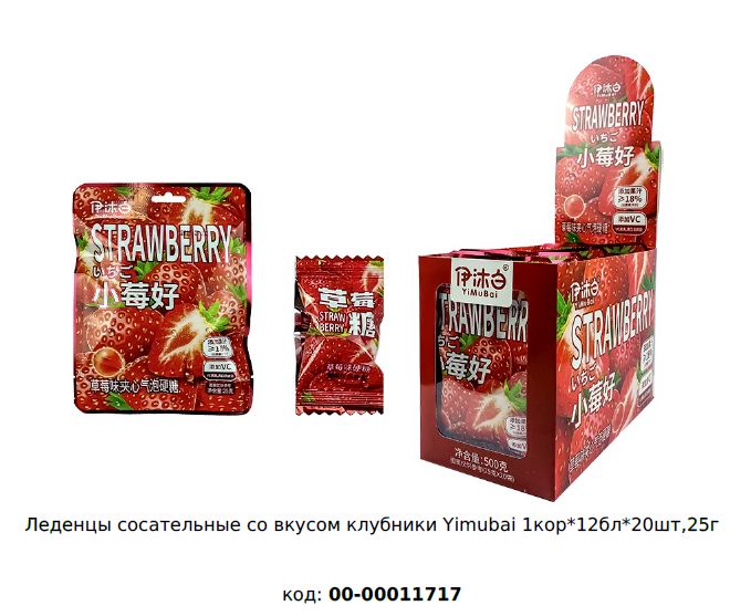 Чтобы купить Леденцы сосательные со вкусом КЛУБНИКИ Fun Candy Lab Yimubai 00-00011717 оптом по цене по запросу, свяжитесь с поставщиком. Компания поставщик — Fun Candy Lab (ООО «СФЕРА») из города Москва. Минимальная сумма оптового заказа: 50000 руб. Минимальная партия 20 шт. Доставка возможна самовывоз, транспортной компанией, автомобилем, железной дорогой. Способы оплаты: наличными, безналичная оплата.