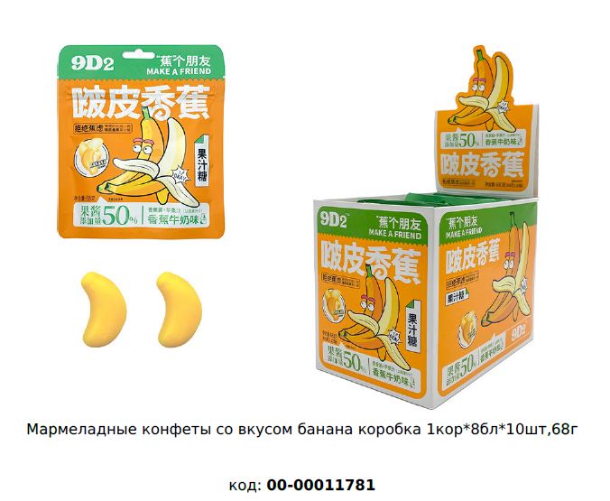 Мармеладные конфеты Fun Candy Lab со вкусом банана коробка 1кор*8бл*10шт, 68 г