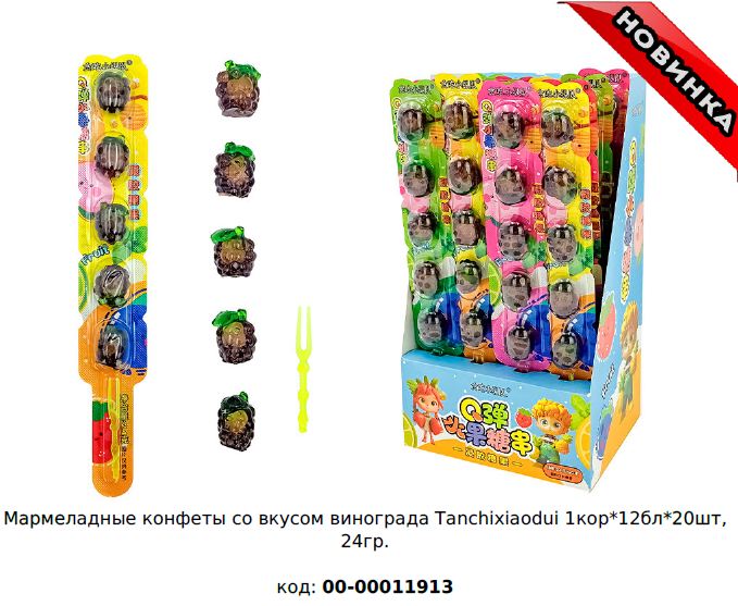 Чтобы купить Мармеладные конфеты со вкусом ВИНОГРАДА Fun Candy Lab Tanchixiaodui 00-00011913 оптом по цене по запросу, свяжитесь с поставщиком. Компания поставщик — Fun Candy Lab (ООО «СФЕРА») из города Москва. Минимальная сумма оптового заказа: 50000 руб. Минимальная партия 20 шт. Доставка возможна самовывоз, транспортной компанией, автомобилем, железной дорогой. Способы оплаты: наличными, безналичная оплата.