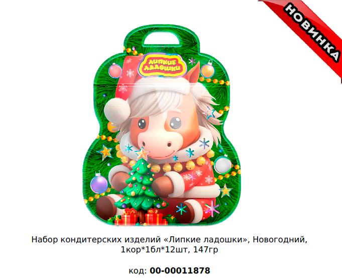 Чтобы купить Новогодний набор. Набор кондитерских изделий "Липкие ладошки" 00-00011878 оптом по цене по запросу, свяжитесь с поставщиком. Компания поставщик — Fun Candy Lab (ООО «СФЕРА») из города Москва. Минимальная сумма оптового заказа: 50000 руб. Минимальная партия 12 шт. Доставка возможна самовывоз, транспортной компанией, автомобилем, железной дорогой. Способы оплаты: наличными, безналичная оплата.