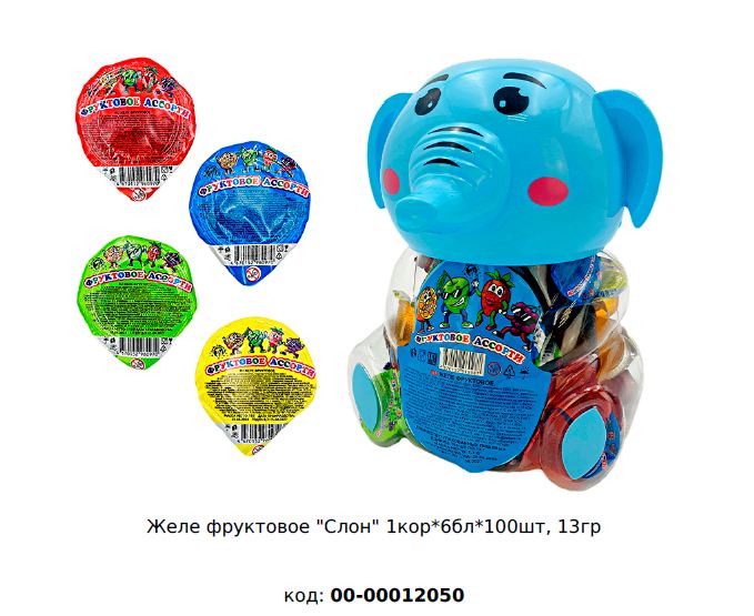 Желе фруктовое “Слон” 1кор*6бл*100шт, 13гр