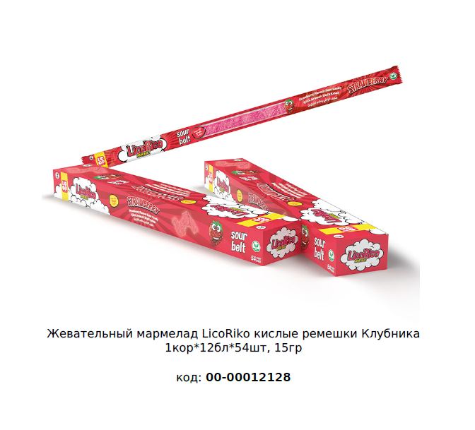 Чтобы купить Жевательный мармелад LicoRiko Fun Candy Lab кислые ремешки Клубника 00-00012128 оптом по цене по запросу, свяжитесь с поставщиком. Компания поставщик — Fun Candy Lab (ООО «СФЕРА») из города Москва. Минимальная сумма оптового заказа: 50000 руб. Минимальная партия 54 шт. Доставка возможна самовывоз, транспортной компанией, автомобилем, железной дорогой. Способы оплаты: наличными, безналичная оплата.