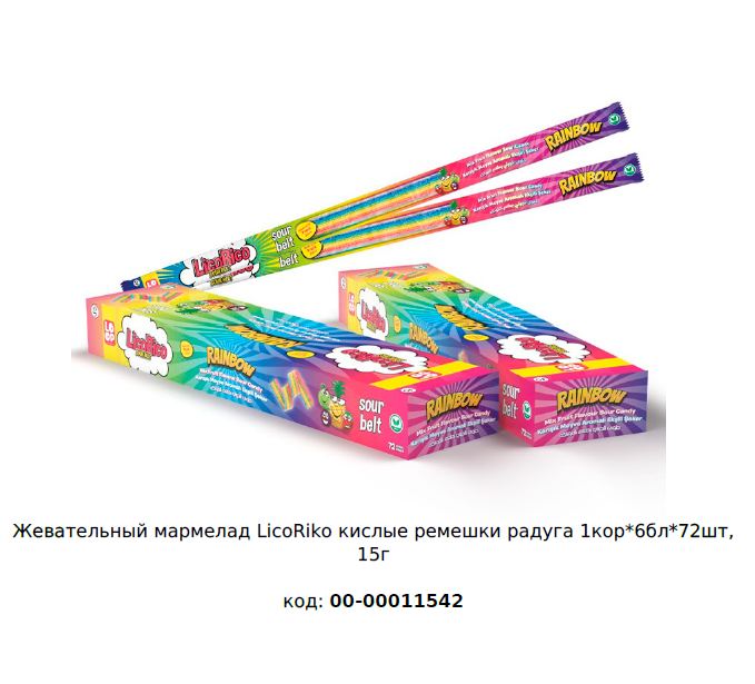 Чтобы купить Жевательный мармелад LicoRiko Fun Candy Lab кислые ремешки радуга 00-00011542 оптом по цене по запросу, свяжитесь с поставщиком. Компания поставщик — Fun Candy Lab (ООО «СФЕРА») из города Москва. Минимальная сумма оптового заказа: 50000 руб. Минимальная партия 72 шт. Доставка возможна самовывоз, транспортной компанией, автомобилем, железной дорогой. Способы оплаты: наличными, безналичная оплата.