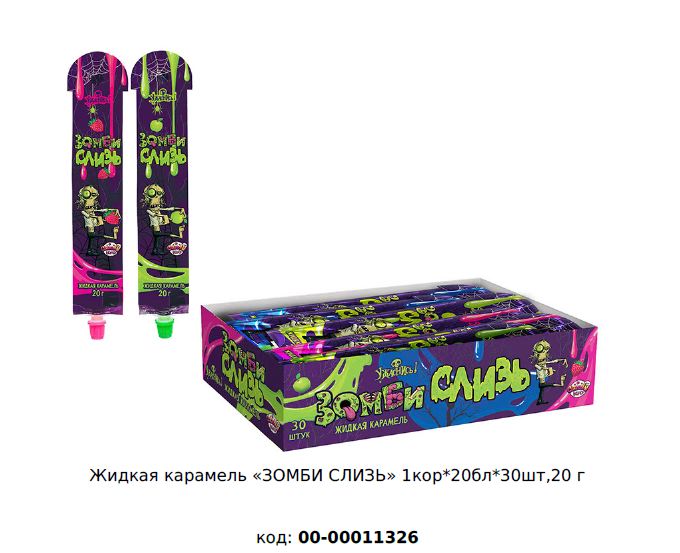 Жидкая карамель “ЗОМБИ СЛИЗЬ” 1кор*20бл*30шт, 20 г