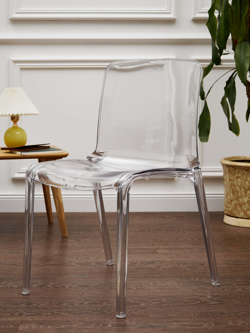 Легкий и крепкий стул из прочного поликарбоната. Почти не заметен, хорошо смотрится и помогает комнате выглядеть просторнее и светлее.