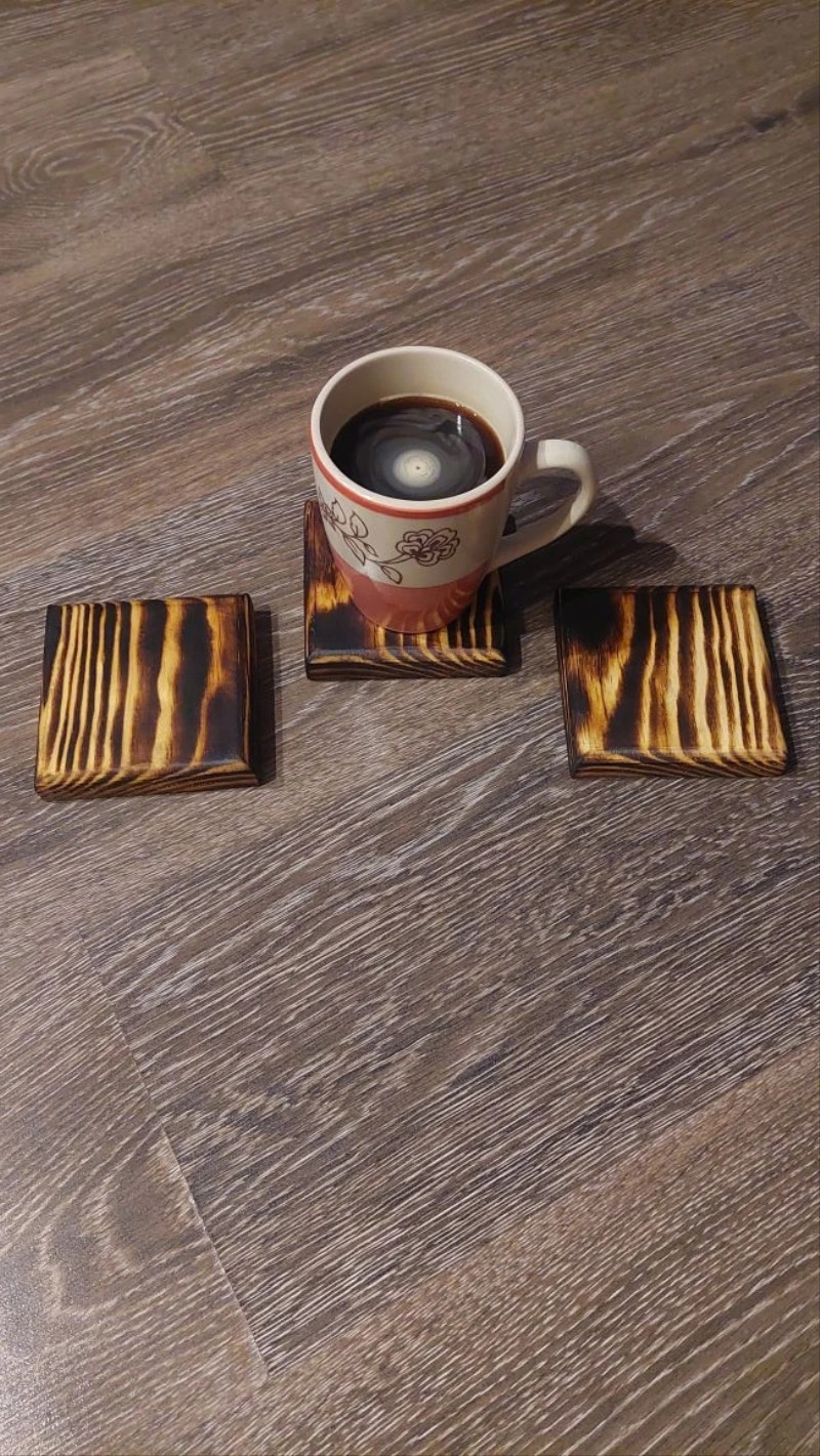 Подставка под горячее, натуральный массив сосны с обжигом, обработана льняным маслом. Размер 100*100*мм.