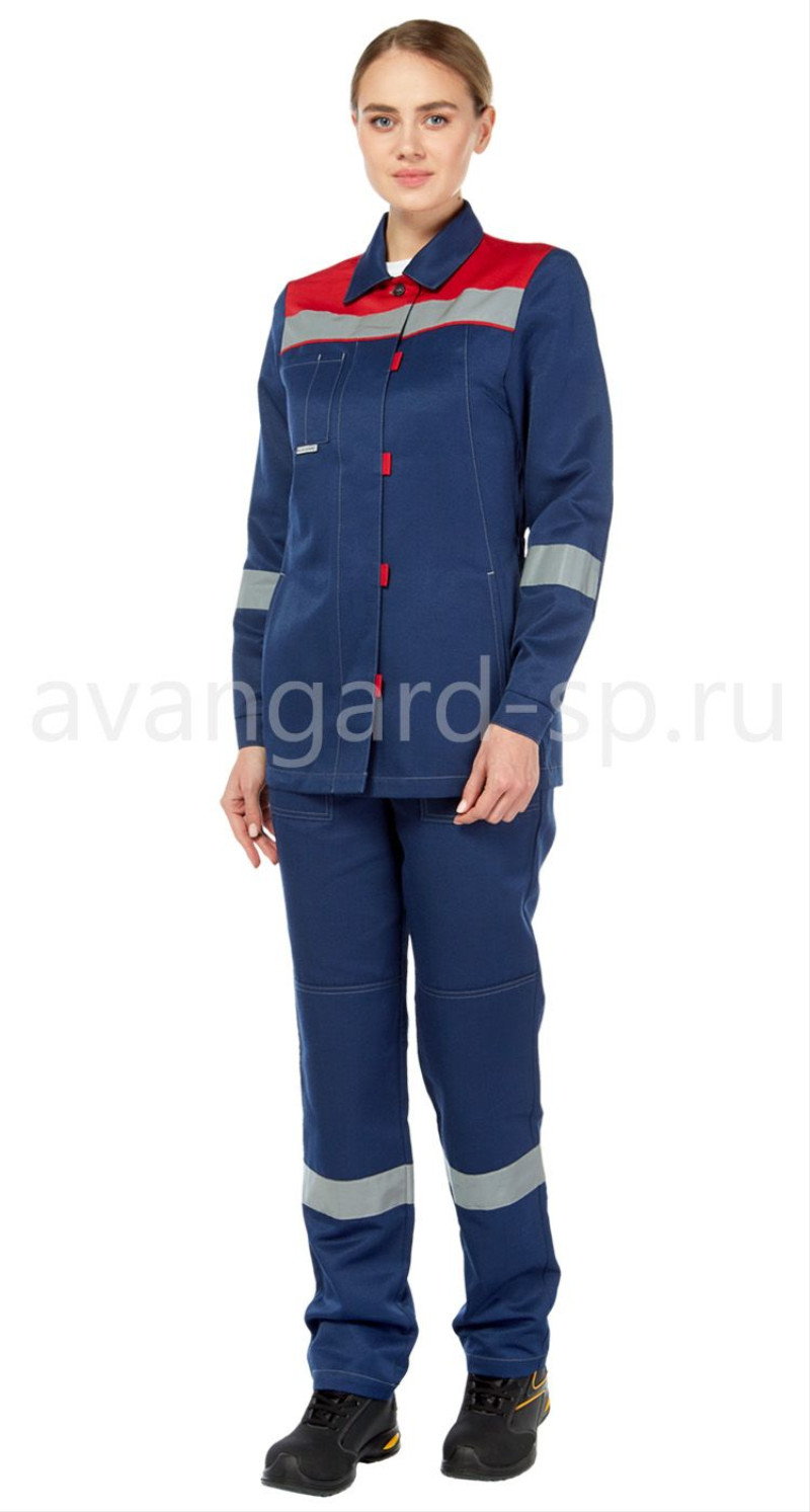 Костюм женский рабочий состоит из куртки и полукомбинезона.