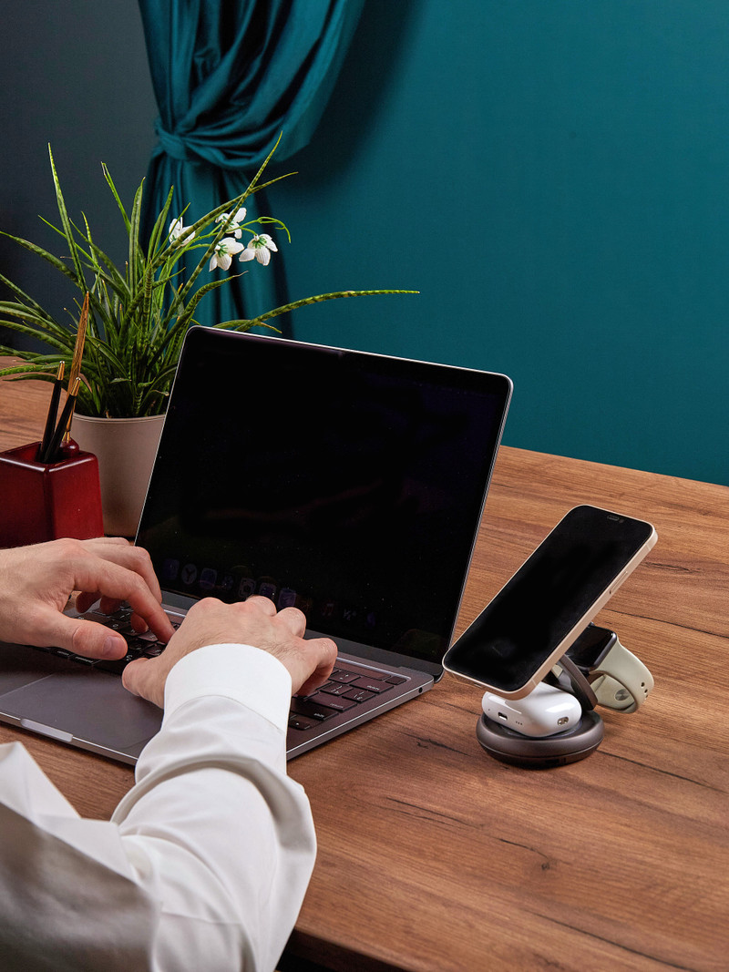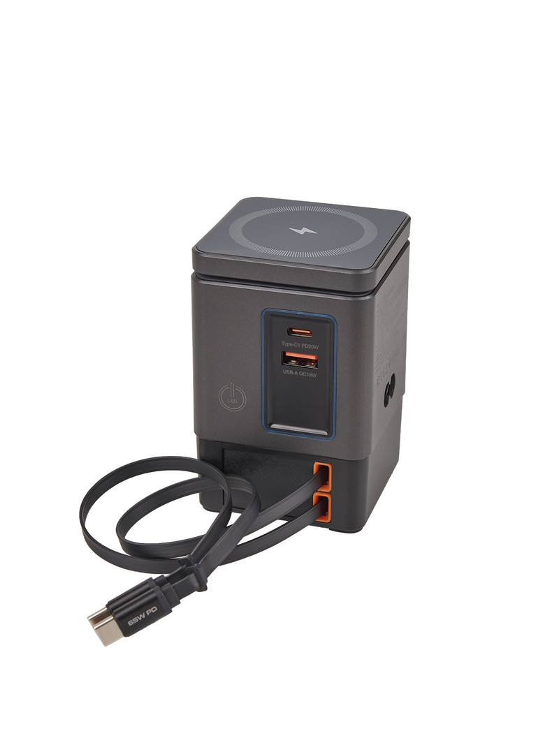 Высокая мощность и универсальность — технические параметры дают возможность заряжать не только смартфоны, но и другие устройства (например, iPad, ноутбук) через USB-C PD или беспроводно.
