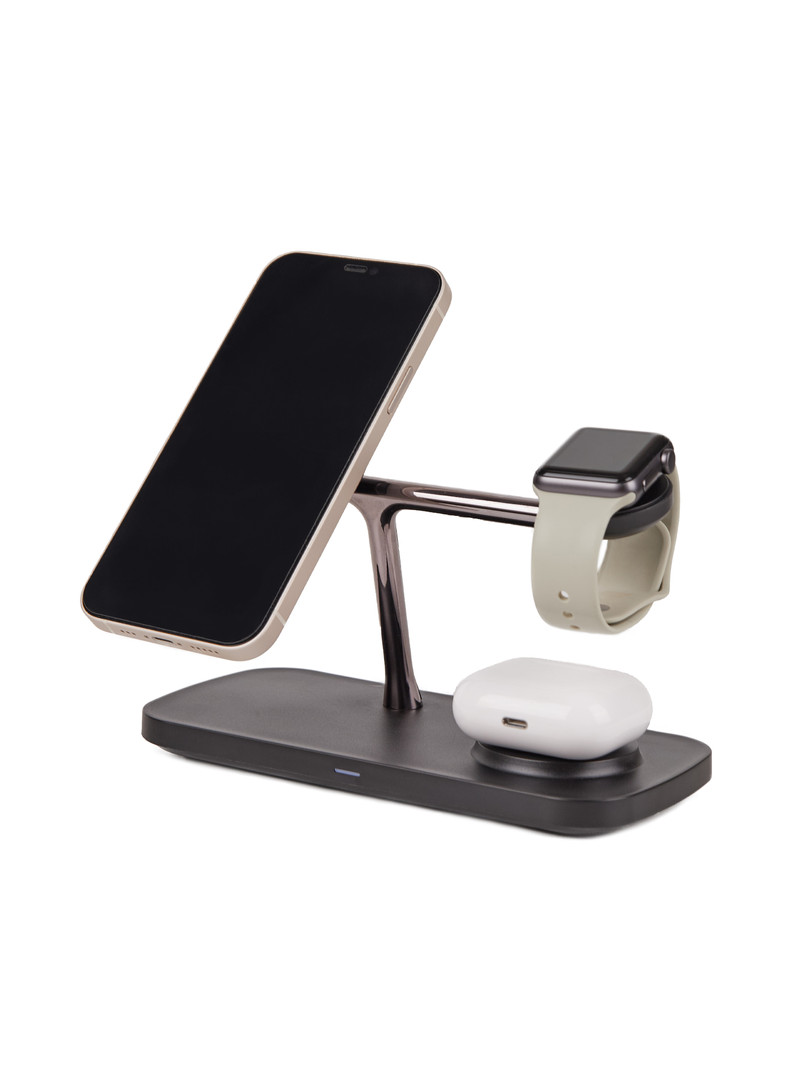 Global Tech T-255 — это современная беспроводная зарядная станция 3 в 1, которая объединяет в себе стиль, мощность и удобство. Одним движением вы сможете зарядить iPhone, Apple Watch и AirPods, избавившись от множества проводов и адаптеров.