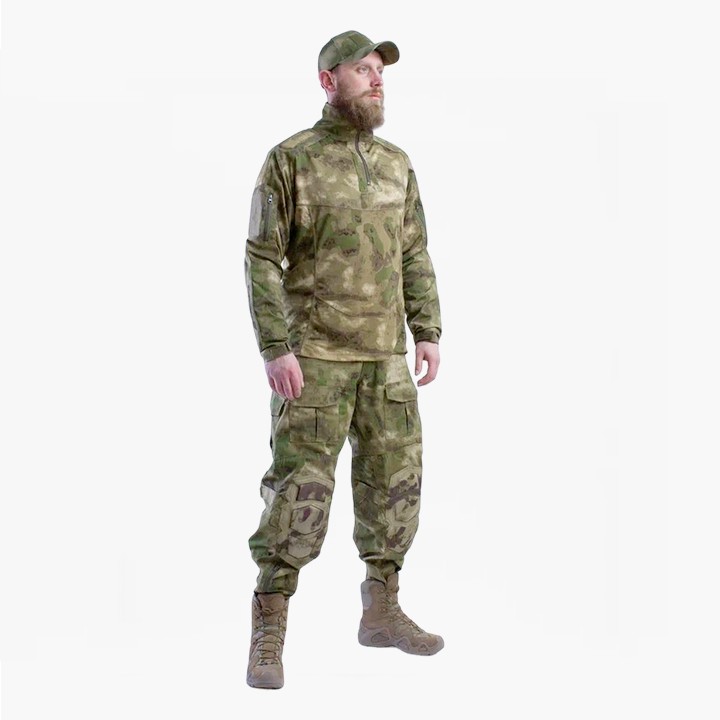 Маскировочный мужской костюм выполнен из плотного материала рип-стоп, а центральная ткань рубашки имеет превосходные влагоотводящие свойства. Тактический костюм имеет защиту колен, локтей, плеч и ягодиц, что позволит обойтись без дополнительного оборудования.