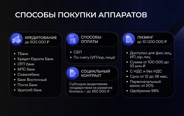 Покупка БЕЗ НДС — экономия до 20% от стоимости аппарата.