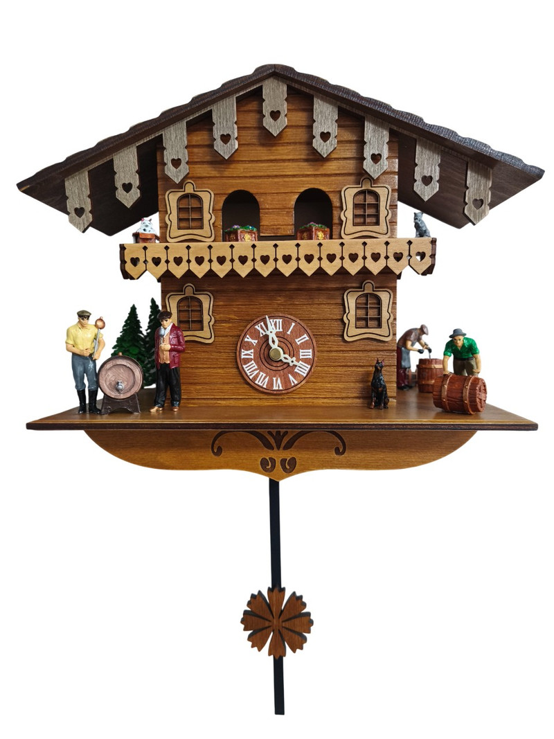 Наши часы оснащены маятниковыми механизмами, а также механизмами с кукушкой. Изготовлены на 80% из дерева (кроме механизмов и фигур людей и животных).