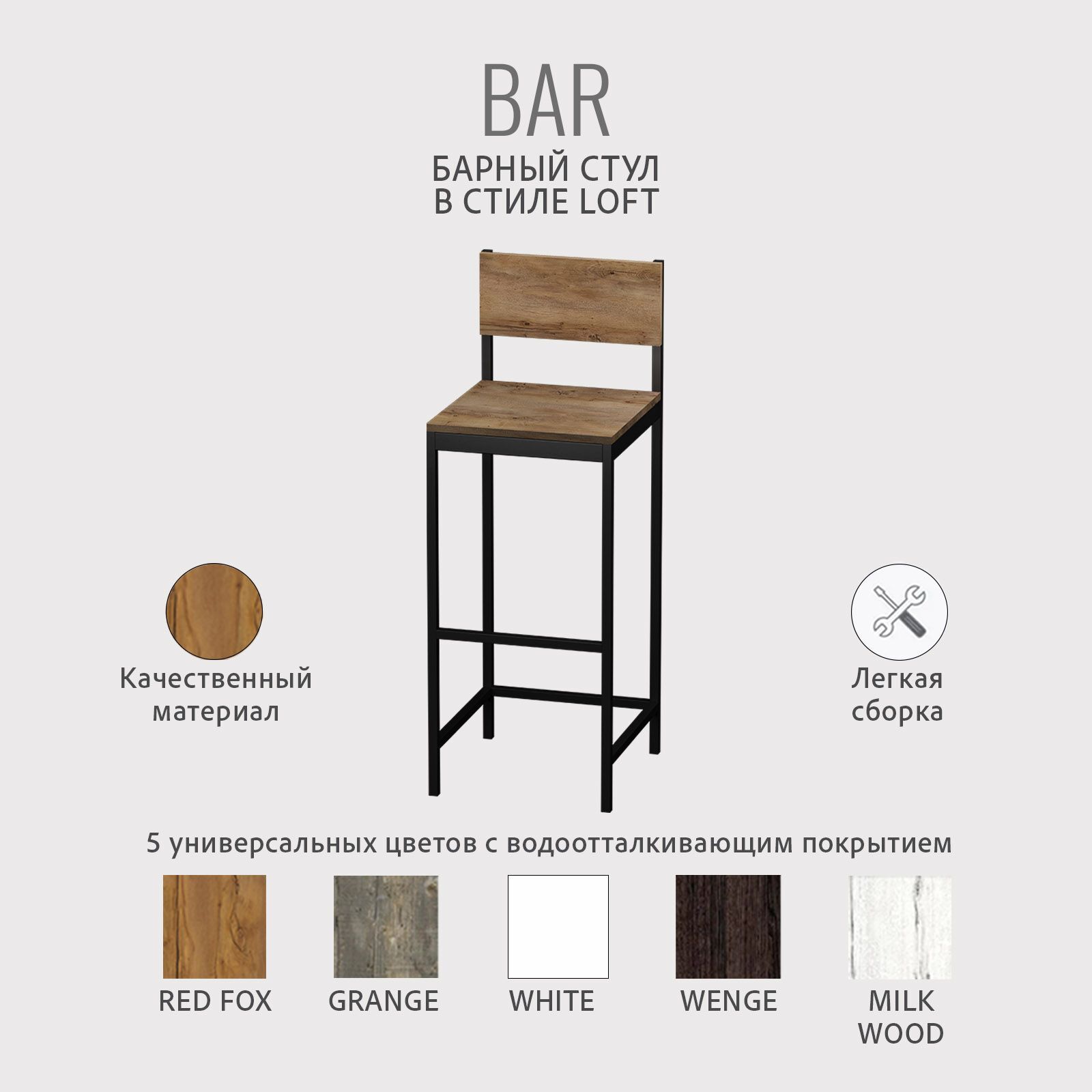 Представляем функциональные и стильные стулья для кухни BAR в стиле лофт. Высокий стул с жестким сиденьем из ЛДСП отлично подойдет к консольному столику LOKKI нашего производства или к столешнице от кухонного гарнитура, стулья также идеально включаются в пространство офиса. Этот барный стул привнесет ноту современности в ваш интерьер. Стулья для кухни станут ярким акцентом вашей обеденной зоны, создавая уют и комфорт.