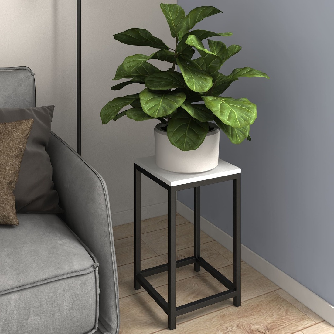 Комплектация: Ножки у подставки изготовлены из цельносварного металлического каркаса 20х20 мм, крепятся к столешнице с помощью шуруповерта и саморезов. На ножках имеются защитные пластиковые заглушки, что позволяет защитить пол от царапин и вмятин. Подставка для цветов лофт представлена в пяти расцветках: бежевый (ясень), белый, коричневый (под натуральное дерево), серый металлик (аррива), венге (темно-коричневый).