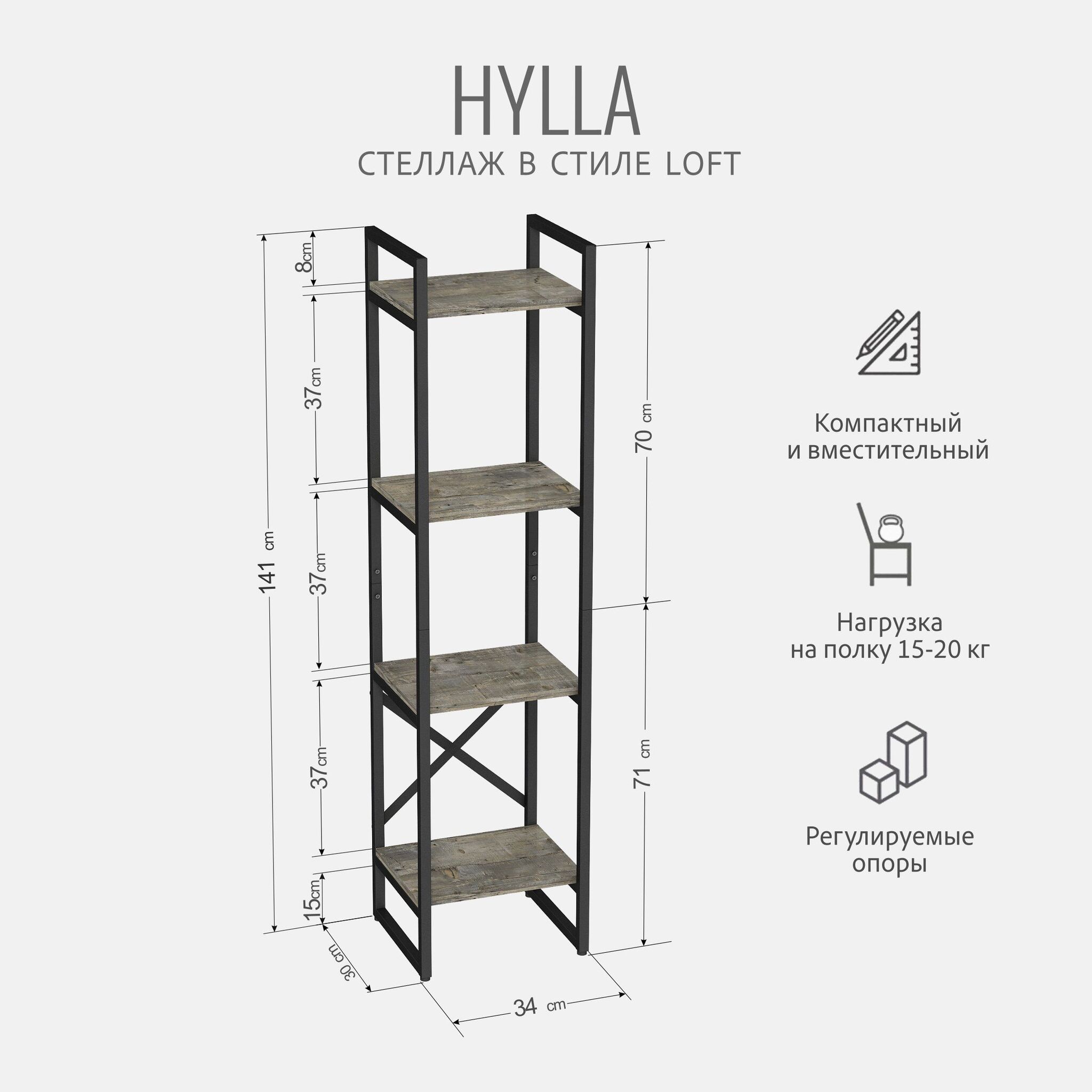 Модульный металлический стеллаж HYLLA mini- универсальное решение для хранения вещей в любом помещении. Современный дизайн стеллажа в стиле лофт отлично впишется в интерьер квартиры, прихожей, дачного дома, гаража, балкона, офиса, склада или магазина. Высокий, узкий напольный стеллаж идеально подойдет для зонирования комнаты, тем самым поможет организовать пространство и создать уютную атмосферу. Этот стеллаж - отличный выбор для людей, которые хотят организовать свои вещи и красиво оформить интерьер комнаты. Он прочный, надежный и практичный, а также является экологически чистой альтернативой икеевской мебели. Получите множество возможностей для хранения вещей с металлическим стеллажем! Используйте шкаф стеллаж как офисная мебель, книжный стеллаж, стеллаж для рассады и цветов, стеллаж в ванную комнату, стеллаж для кухни, стеллаж на балкон, витрина стеллаж, стеллаж для посуды, стеллаж в гостиную, гардеробная система. Если вам нужно разместить инструменты и принадлежности, то металлическая этажерка станет незаменимой в гараже или мастерской. Шкаф стеллаж идеально подойдет для хранения книг и документов в книжной комнате или гостиной. Вместительные широкие полки подойдут, как мебель для хранения инструментов и ящиков, садовых принадлежностей, банок с заготовками, инвентаря и стройматериалов. Компактный и открытый железный стеллаж будет выигрышно смотреться в кладовке, прачечной, в пункте выдачи заказов. Наш стеллаж отлично справится с ролью оригинальной кухонной мебели. Он подходит для хранения кухонных принадлежностей, посуды и других необходимых мелочей. Стеллаж поможет вам освободить пространство на столеМеталлический каркас у стеллажа с полками выполнен из квадратной профильной трубы 20х20мм, окрашен в черный матовый цвет и защищен от ржавчины и коррозии благодаря порошковому покрытию, устойчивому к влаге. Полки изготовлены из высококачественного ЛДСП толщиной 16мм, каждая полочка выдерживает нагрузку до 20 кг. Стеллаж модульный изготовлен из цельносварного металлического каркаса, усилен двумя задними металлическими балками, что позволяет ему сохранять устойчивое положение. На ножках имеются регулируемые опоры, которые регулируются по высоте и позволяют защитить пол от царапин и вмятин. Размеры этажерки стеллажа в собранном виде: высота - 103,5см, ширина - 34см, глубина - 30см.Поставляется стеллаж деревянный в 1 упаковке, конструкция разборная, легко собирается с помощью шуруповерта и болтов, крепления и инструкция по сборке входят в комплектацию. Качественную и удобную мебель для хранения своих вещей вы можете приобрести в нашем магазине.Товар продается напрямую от производителя, что гарантирует качество и выгодную цену.