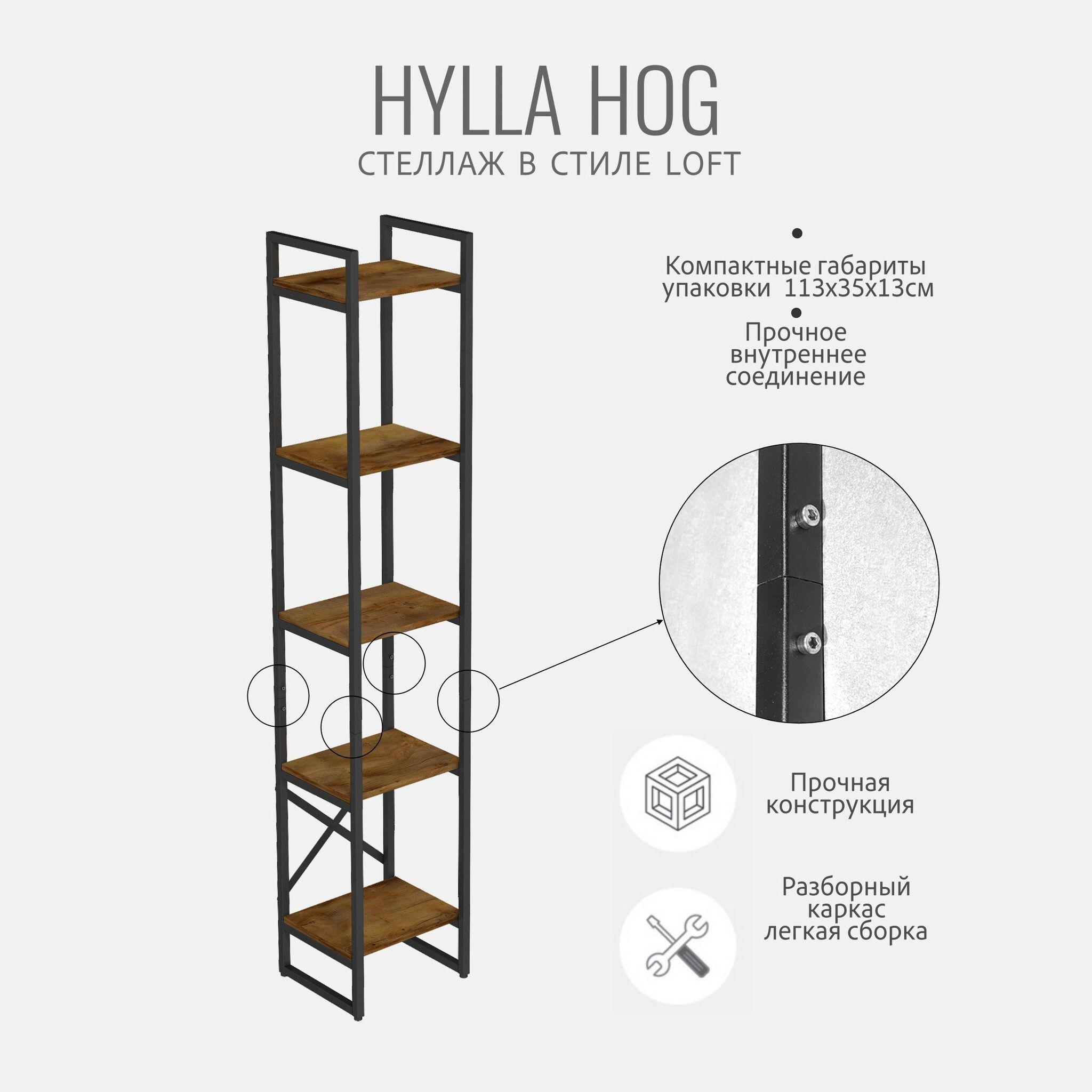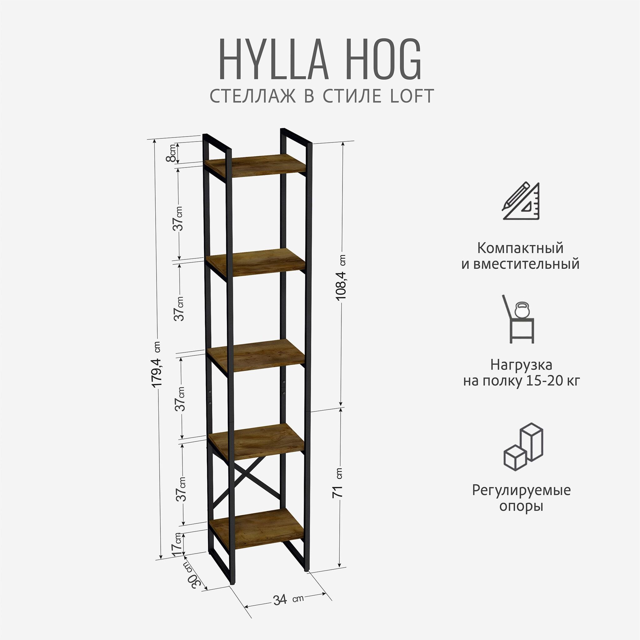 Модульный металлический стеллаж HYLLA mini- универсальное решение для хранения вещей в любом помещении. Современный дизайн стеллажа в стиле лофт отлично впишется в интерьер квартиры, прихожей, дачного дома, гаража, балкона, офиса, склада или магазина. Высокий, узкий напольный стеллаж идеально подойдет для зонирования комнаты, тем самым поможет организовать пространство и создать уютную атмосферу. Этот стеллаж - отличный выбор для людей, которые хотят организовать свои вещи и красиво оформить интерьер комнаты. Он прочный, надежный и практичный, а также является экологически чистой альтернативой икеевской мебели. Получите множество возможностей для хранения вещей с металлическим стеллажем! Используйте шкаф стеллаж как офисная мебель, книжный стеллаж, стеллаж для рассады и цветов, стеллаж в ванную комнату, стеллаж для кухни, стеллаж на балкон, витрина стеллаж, стеллаж для посуды, стеллаж в гостиную, гардеробная система. Если вам нужно разместить инструменты и принадлежности, то металлическая этажерка станет незаменимой в гараже или мастерской. Шкаф стеллаж идеально подойдет для хранения книг и документов в книжной комнате или гостиной. Вместительные широкие полки подойдут, как мебель для хранения инструментов и ящиков, садовых принадлежностей, банок с заготовками, инвентаря и стройматериалов. Компактный и открытый железный стеллаж будет выигрышно смотреться в кладовке, прачечной, в пункте выдачи заказов. Наш стеллаж отлично справится с ролью оригинальной кухонной мебели. Он подходит для хранения кухонных принадлежностей, посуды и других необходимых мелочей. Стеллаж поможет вам освободить пространство на столеМеталлический каркас у стеллажа с полками выполнен из квадратной профильной трубы 20х20мм, окрашен в черный матовый цвет и защищен от ржавчины и коррозии благодаря порошковому покрытию, устойчивому к влаге. Полки изготовлены из высококачественного ЛДСП толщиной 16мм, каждая полочка выдерживает нагрузку до 20 кг. Стеллаж модульный изготовлен из цельносварного металлического каркаса, усилен двумя задними металлическими балками, что позволяет ему сохранять устойчивое положение. На ножках имеются регулируемые опоры, которые регулируются по высоте и позволяют защитить пол от царапин и вмятин. Размеры этажерки стеллажа в собранном виде: высота - 103,5см, ширина - 34см, глубина - 30см.Поставляется стеллаж деревянный в 1 упаковке, конструкция разборная, легко собирается с помощью шуруповерта и болтов, крепления и инструкция по сборке входят в комплектацию. Качественную и удобную мебель для хранения своих вещей вы можете приобрести в нашем магазине.Товар продается напрямую от производителя, что гарантирует качество и выгодную цену.
