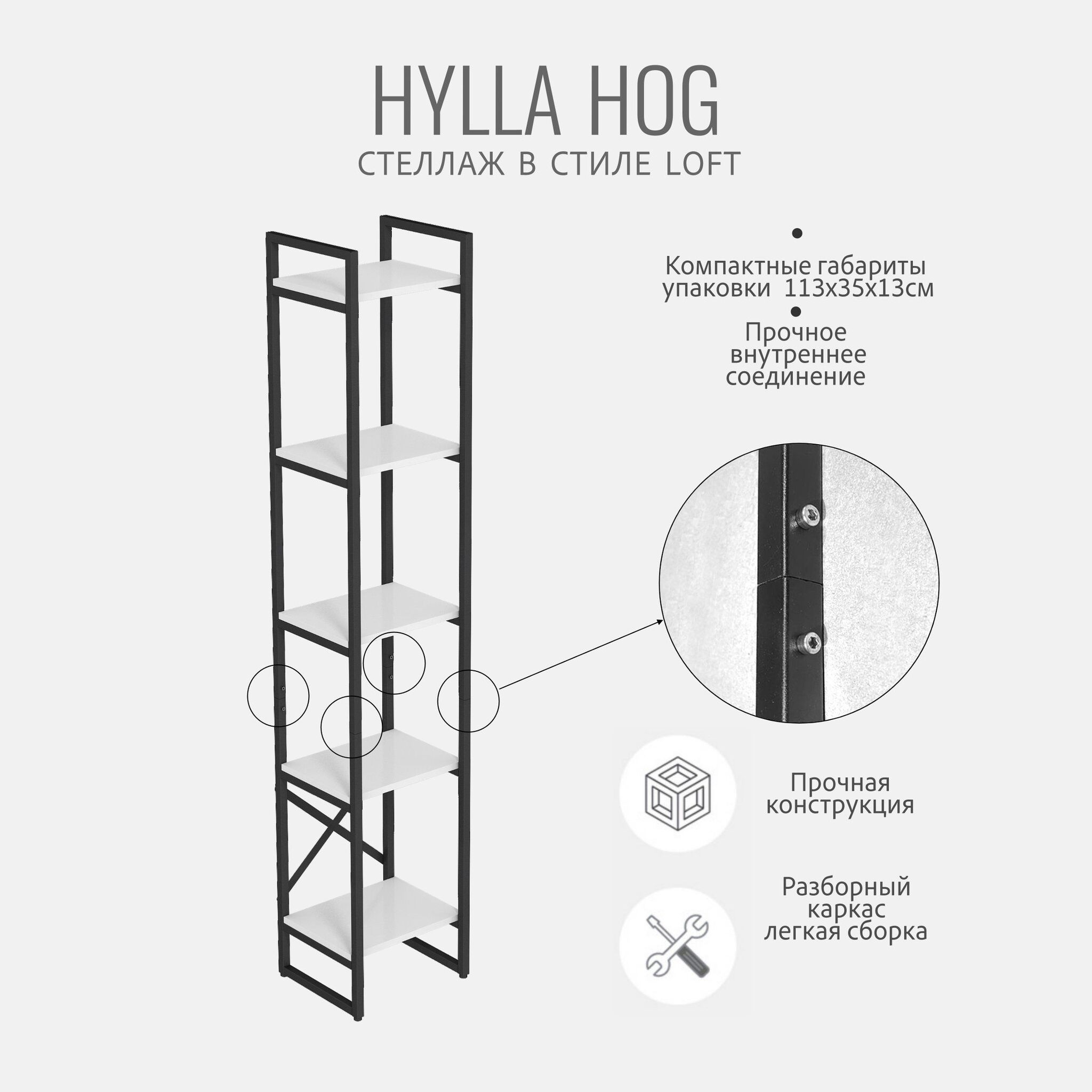 Модульный металлический стеллаж HYLLA mini- универсальное решение для хранения вещей в любом помещении. Современный дизайн стеллажа в стиле лофт отлично впишется в интерьер квартиры, прихожей, дачного дома, гаража, балкона, офиса, склада или магазина. Высокий, узкий напольный стеллаж идеально подойдет для зонирования комнаты, тем самым поможет организовать пространство и создать уютную атмосферу. Этот стеллаж - отличный выбор для людей, которые хотят организовать свои вещи и красиво оформить интерьер комнаты. Он прочный, надежный и практичный, а также является экологически чистой альтернативой икеевской мебели. Получите множество возможностей для хранения вещей с металлическим стеллажем! Используйте шкаф стеллаж как офисная мебель, книжный стеллаж, стеллаж для рассады и цветов, стеллаж в ванную комнату, стеллаж для кухни, стеллаж на балкон, витрина стеллаж, стеллаж для посуды, стеллаж в гостиную, гардеробная система. Если вам нужно разместить инструменты и принадлежности, то металлическая этажерка станет незаменимой в гараже или мастерской. Шкаф стеллаж идеально подойдет для хранения книг и документов в книжной комнате или гостиной. Вместительные широкие полки подойдут, как мебель для хранения инструментов и ящиков, садовых принадлежностей, банок с заготовками, инвентаря и стройматериалов. Компактный и открытый железный стеллаж будет выигрышно смотреться в кладовке, прачечной, в пункте выдачи заказов. Наш стеллаж отлично справится с ролью оригинальной кухонной мебели. Он подходит для хранения кухонных принадлежностей, посуды и других необходимых мелочей. Стеллаж поможет вам освободить пространство на столеМеталлический каркас у стеллажа с полками выполнен из квадратной профильной трубы 20х20мм, окрашен в черный матовый цвет и защищен от ржавчины и коррозии благодаря порошковому покрытию, устойчивому к влаге. Полки изготовлены из высококачественного ЛДСП толщиной 16мм, каждая полочка выдерживает нагрузку до 20 кг. Стеллаж модульный изготовлен из цельносварного металлического каркаса, усилен двумя задними металлическими балками, что позволяет ему сохранять устойчивое положение. На ножках имеются регулируемые опоры, которые регулируются по высоте и позволяют защитить пол от царапин и вмятин. Размеры этажерки стеллажа в собранном виде: высота - 103,5см, ширина - 34см, глубина - 30см.Поставляется стеллаж деревянный в 1 упаковке, конструкция разборная, легко собирается с помощью шуруповерта и болтов, крепления и инструкция по сборке входят в комплектацию. Качественную и удобную мебель для хранения своих вещей вы можете приобрести в нашем магазине.Товар продается напрямую от производителя, что гарантирует качество и выгодную цену.