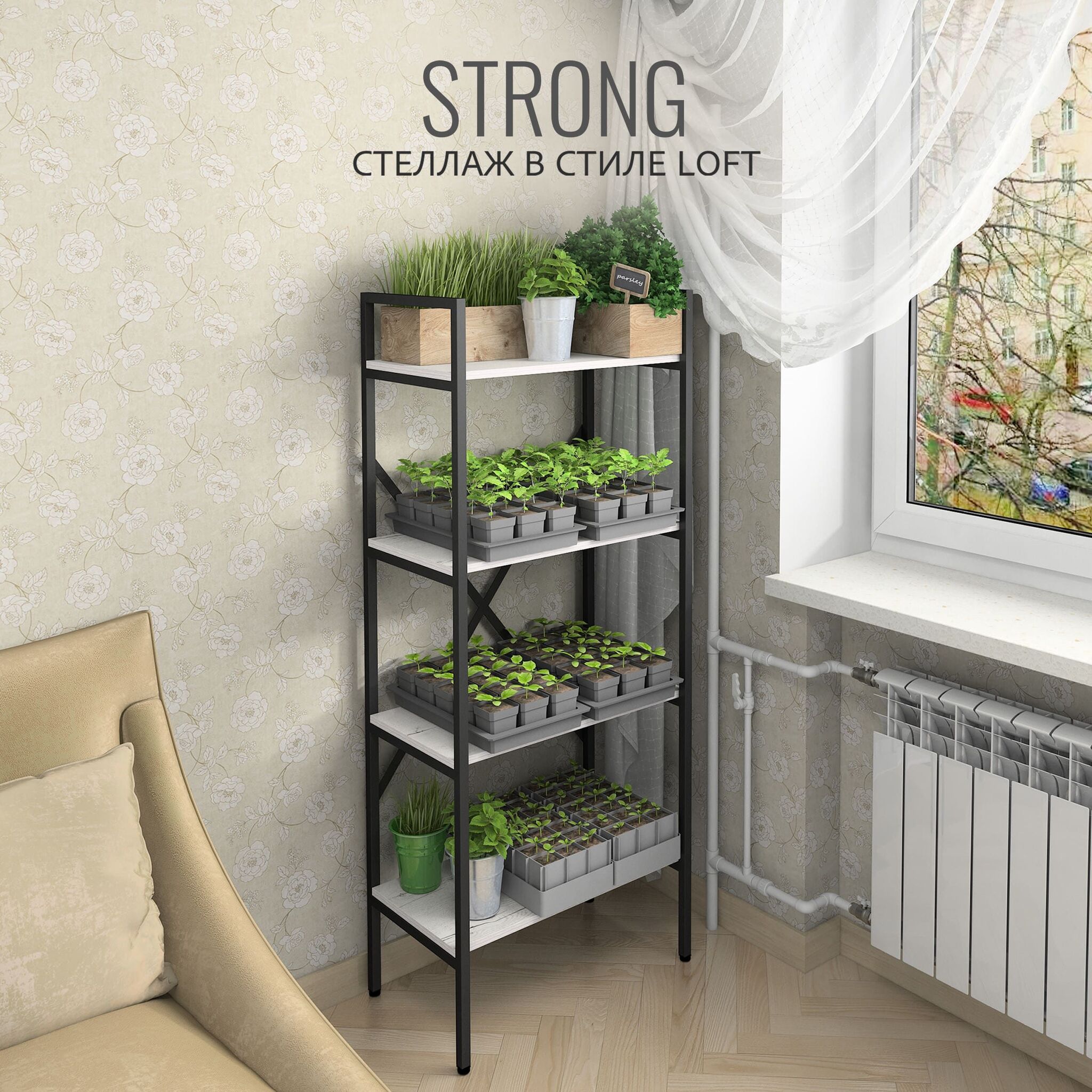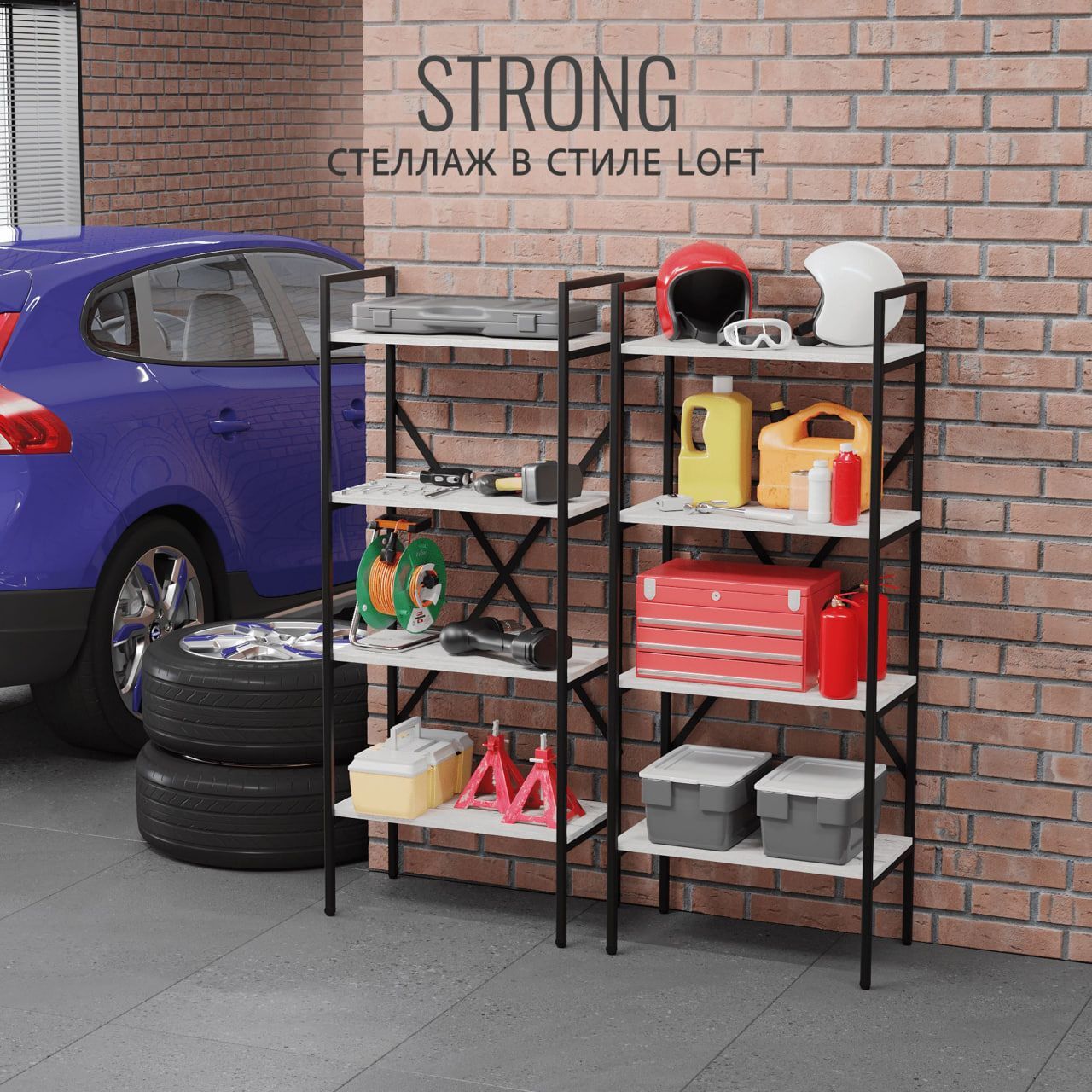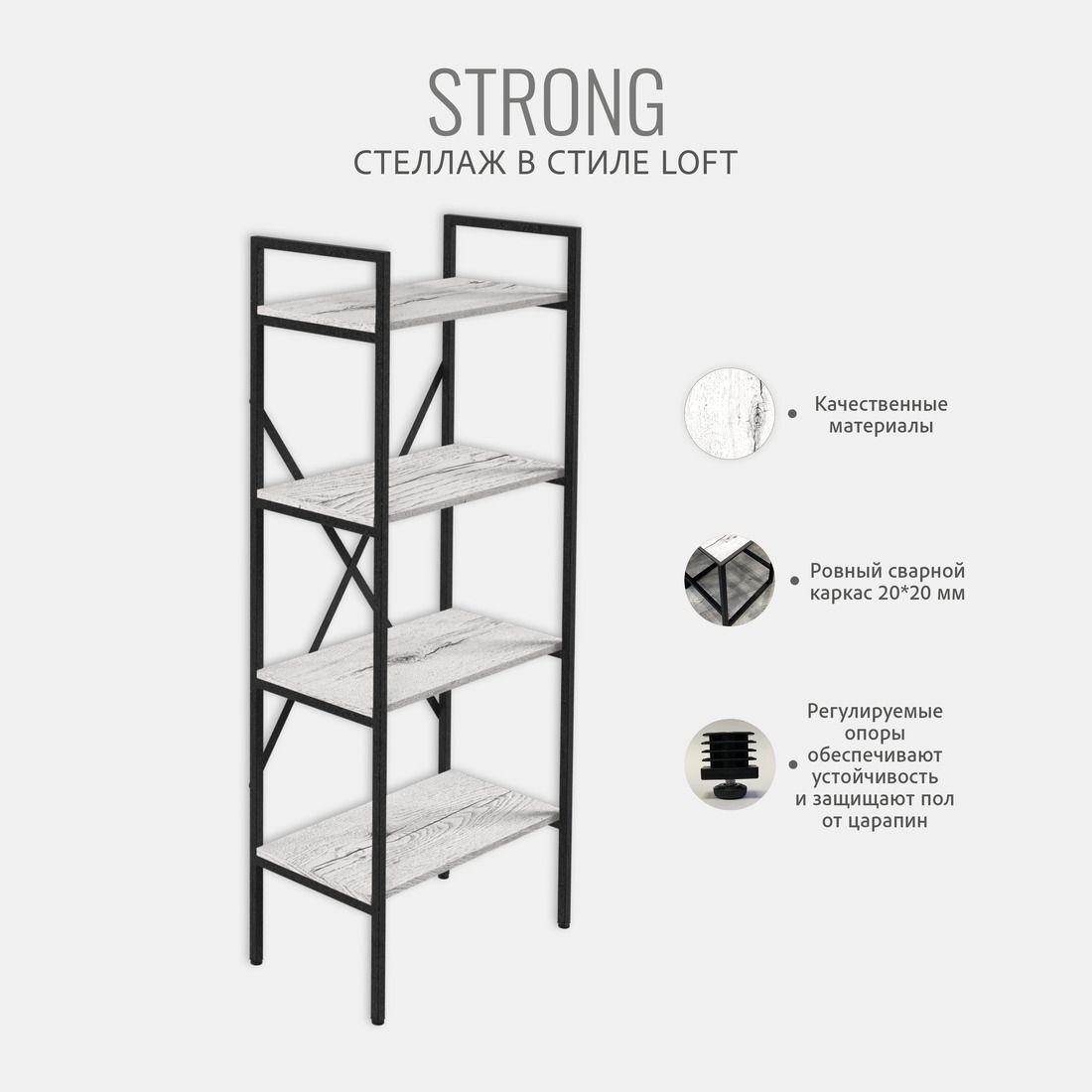 Модульный металлический стеллаж STRONG - универсальное решение для хранения вещей в любом помещении. Современный дизайн стеллажа в стиле лофт отлично впишется в интерьер квартиры, прихожей, дачного дома, гаража, балкона, офиса, склада или магазина. Высокий, узкий напольный стеллаж идеально подойдет для зонирования комнаты, тем самым поможет организовать пространство и создать уютную атмосферу. Этот стеллаж - отличный выбор для людей, которые хотят организовать свои вещи и красиво оформить интерьер комнаты. Он прочный, надежный и практичный, а также является экологически чистой альтернативой икеевской мебели. Получите множество возможностей для хранения вещей с металлическим стеллажем!
