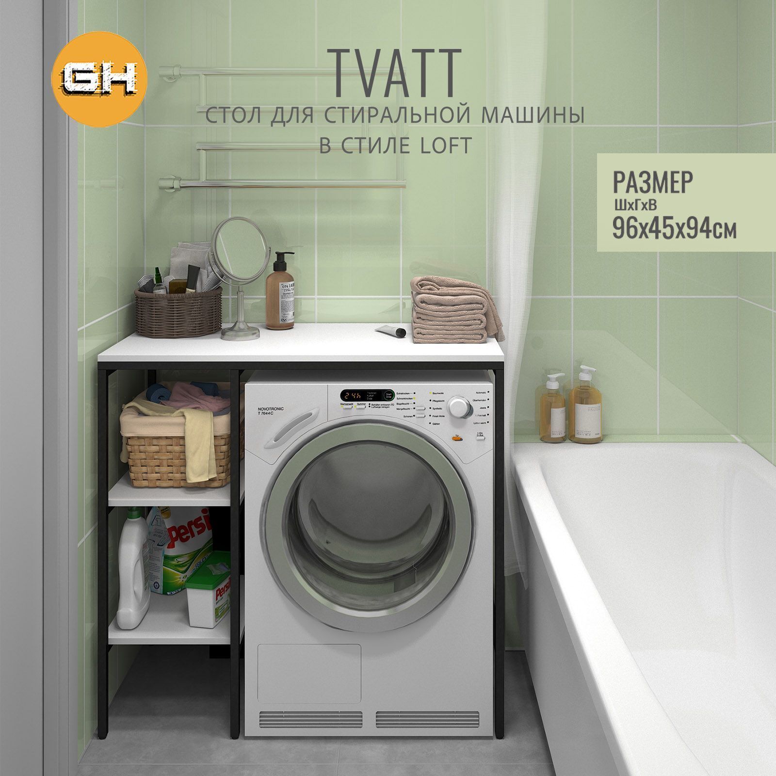 Универсальный стеллаж TVATT loft для стиральной машины - настоящий органайзер для всех ваших вещей и аксессуаров. Стильный и компактный, он идеально впишется в любую ванную комнату, придавая ей порядок и уют.