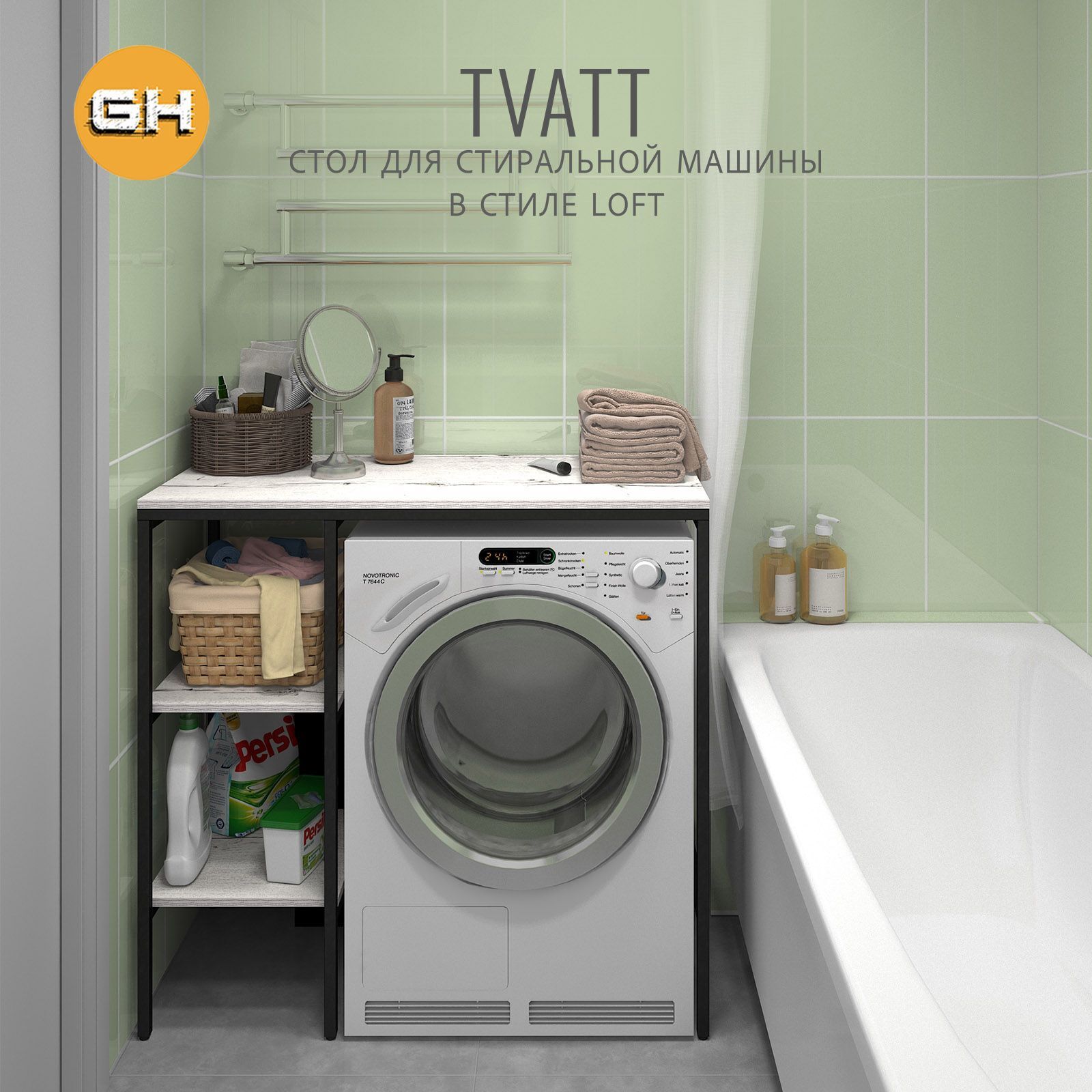 Универсальный стеллаж TVATT loft для стиральной машины - настоящий органайзер для всех ваших вещей и аксессуаров. Стильный и компактный, он идеально впишется в любую ванную комнату, придавая ей порядок и уют.