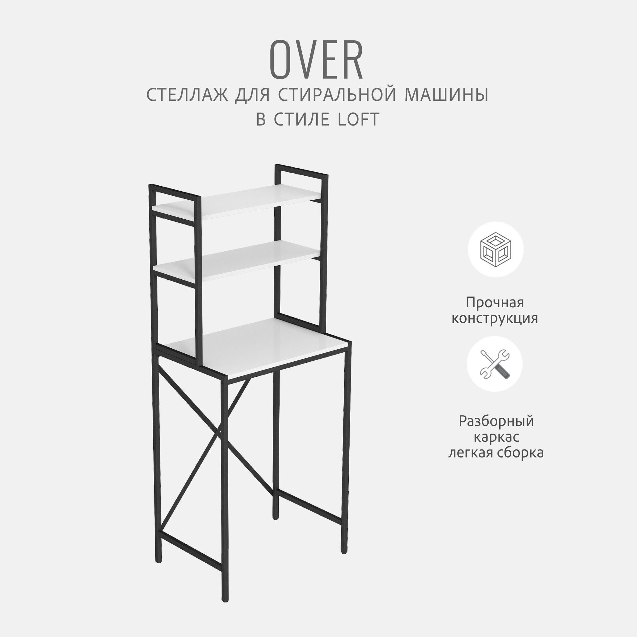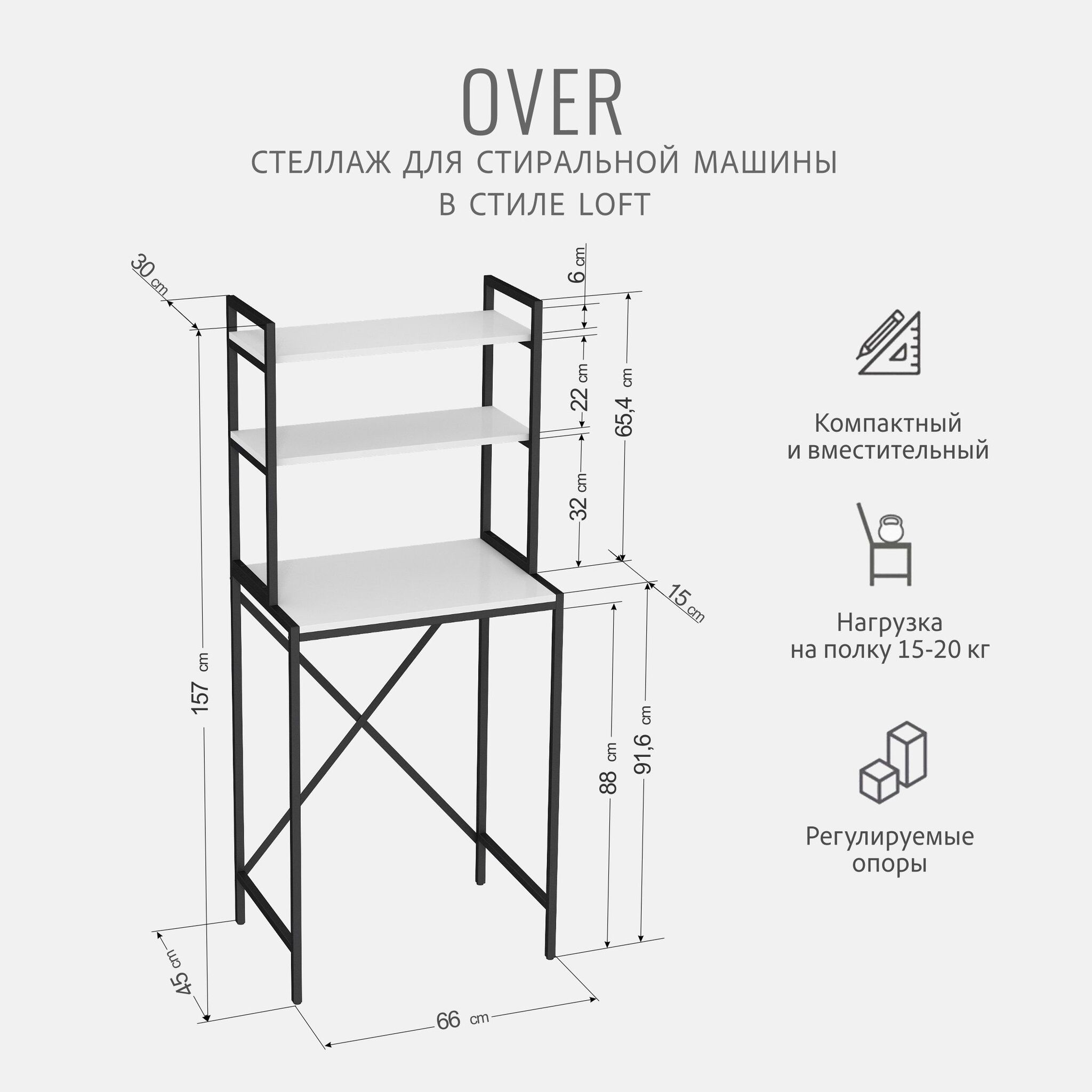 Модульная тумбочка OVER loft под стиральную машину — это идеальное и полезное решение для тех, кто стремится к оптимальной организации пространства ванной комнаты или дома.Ваша ванная комната превратится в приятный лофт-стильный уголок с этим модным мебельным элементом. Стеллаж под стиральную машину может быть использован для хранения предметов личной гигиены, косметики, полотенец и других необходимых аксессуаров. На нем можно расположить цветы или коллекцию свечей, чтобы добавить уютности вашему пространству ванной комнаты.Пенал отлично подходит для использования в гостиной или кухне. Высокий деревянный шкаф с большим количеством открытых полочек создаст настроение домашнего уюта и позволит хранить различные предметы: от посуды до объемных принадлежностей. Стеллаж металлический оснащен регулируемыми опорами на ножках, которые обеспечивают устойчивость и защищают пол от царапин и вмятин. Вы можете легко подстроить его под любую поверхность для оптимального использования пространства.Прочная разборная конструкция и качественные материалы гарантируют надежность и долговечность этажерки. Каждая полка стеллажа может выдерживать нагрузку от 15 до 20 кг, что позволяет разместить на ней все необходимые предметы без беспокойства о прочности. Подобно незаменимому помощнику, он способен обеспечить аккуратную и эффективную систему хранения без излишеств. Высота полок позволяет разместить декоративные корзины для хранения вещей.Металлический каркас у органайзера с полками выполнен из профиля 20 х 20 мм, окрашен в черный матовый цвет и защищен от ржавчины и коррозии благодаря порошковому покрытию, устойчивому к влаге. Полки изготовлены из высококачественного ЛДСП толщиной 16 мм. Стеллаж модульный напольный изготовлен из цельносварного металлического каркаса, усилен двумя задними металлическими балками, что позволяет ему сохранять устойчивое положение.Поставляется стеллаж деревянный в 1 упаковке, конструкция разборная, легко собирается с помощью шуруповерта и болтов, крепления и подробная инструкция по сборке входят в комплектацию.Независимо от того, где вы решите разместить этот узкий стеллаж - он прекрасно сочетается с любыми интерьерами благодаря своему стильному и элегантному дизайну.Товар продается напрямую от производителя, что гарантирует качество и выгодную цену.