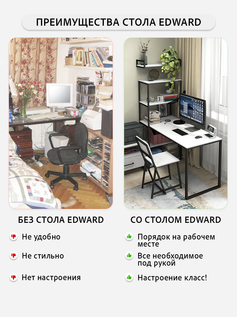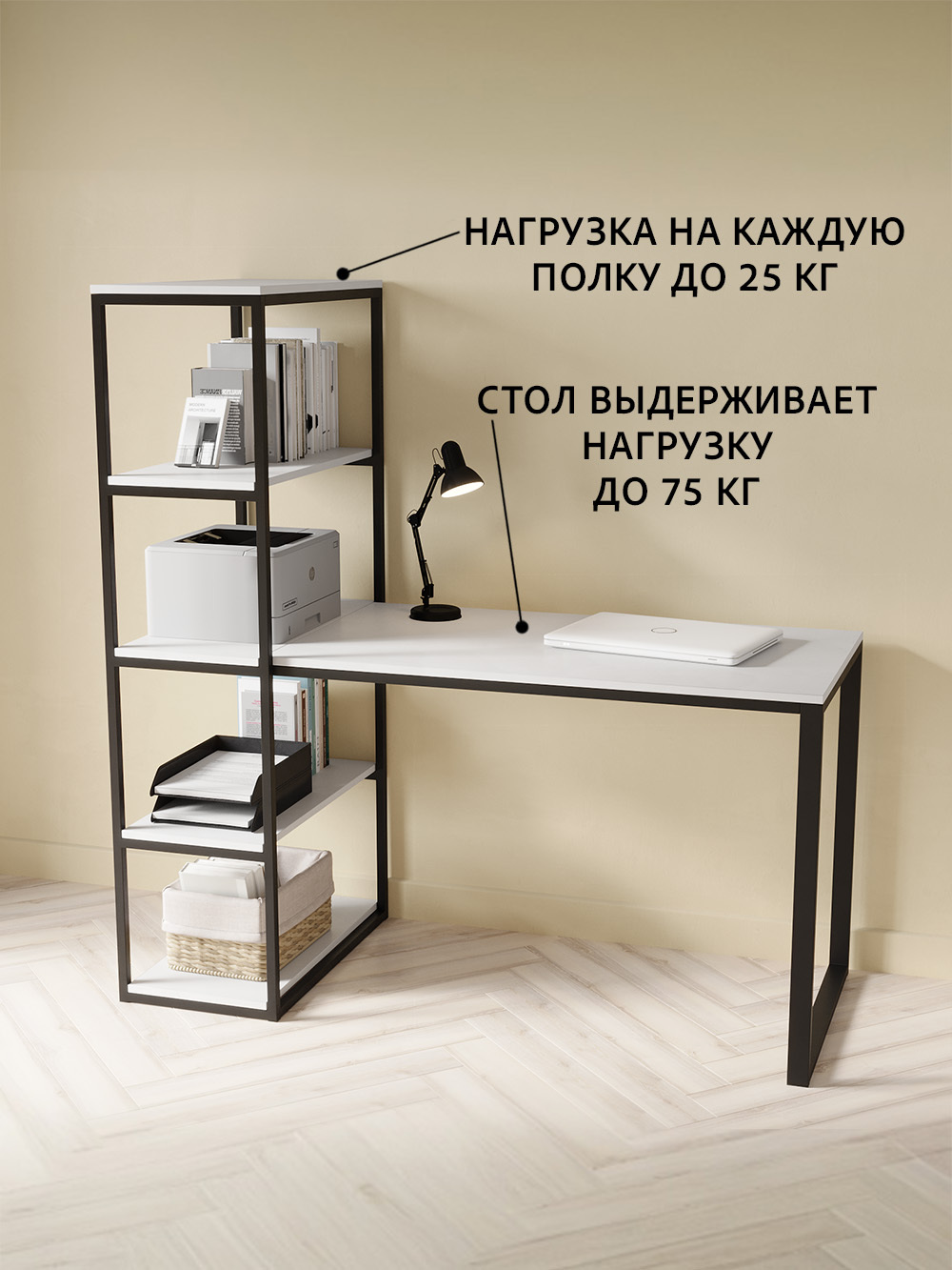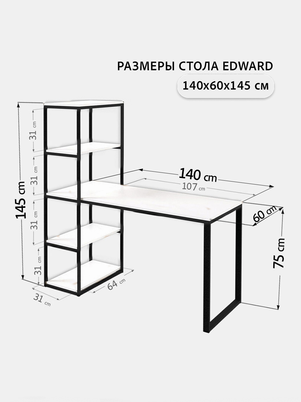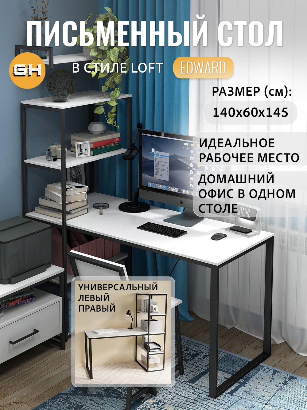 Письменный стол Edward изготовлен в стиле LOFT. Классическая модель компьютерного стола сочетает в себе оригинальный дизайн, практичность и качество. Стол идеально подойдет для работы и учебы, как письменный стол для школьника, парта для школьника, стол офисный, модуль для ресепшена и для организации домашнего рабочего пространства. Универсальная конструкция компьютерного стола позволяет менять расположение стеллажа на левую и на правую сторону.Стол компьютерный Эдвард комбинированный с открытой стеллажной системой, позволяет создать удобное, эргономичное и функциональное рабочее место на минимальной площади. Стеллаж можно заполнить книгами, учебниками, компьютерными принадлежностями, сувенирами, папками с документами.Металлическая конструкция выполнена из профильной трубы 40х20 мм и 20х20 мм, что позволяет выдерживать нагрузку 180 кг, стол так же усилен траверсой под самой столешницей для дополнительной устойчивости. Столешница изготовлена из высококачественного ЛДСП, специальное ламинированное покрытие делает ее ударопрочной и не царапающейся, а также защищает от влаги. На широкой столешнице можно свободно разместить ноутбук, настольную лампу, письменные принадлежности и другие предметы, необходимые для работы.В комплект к письменному столу идеально подойдут: