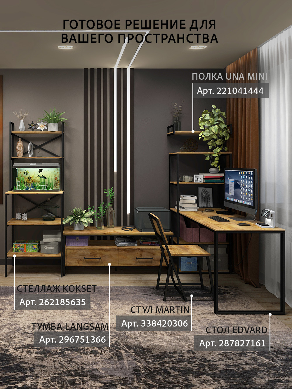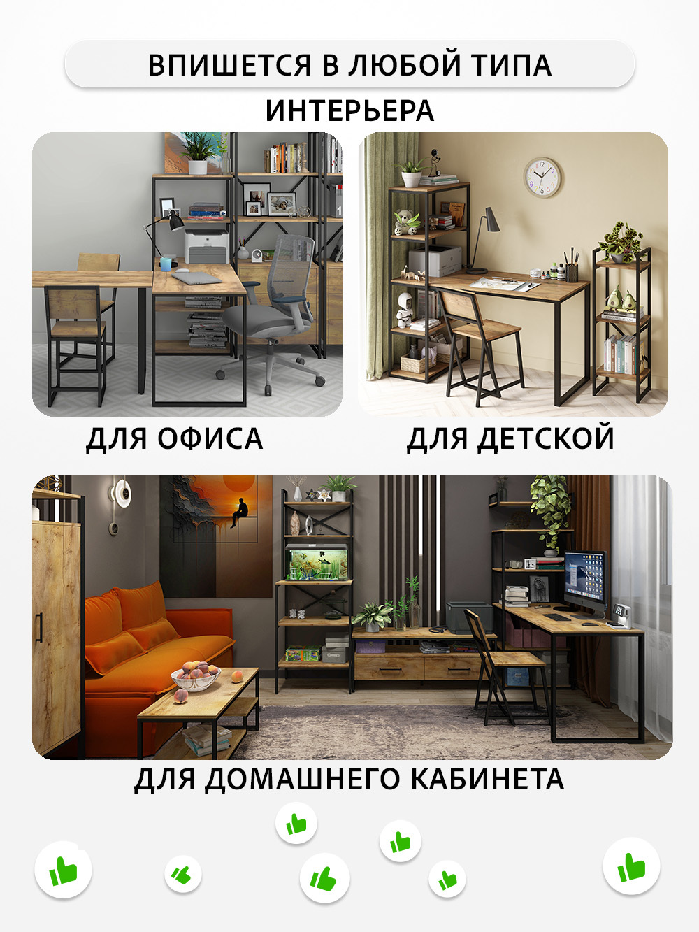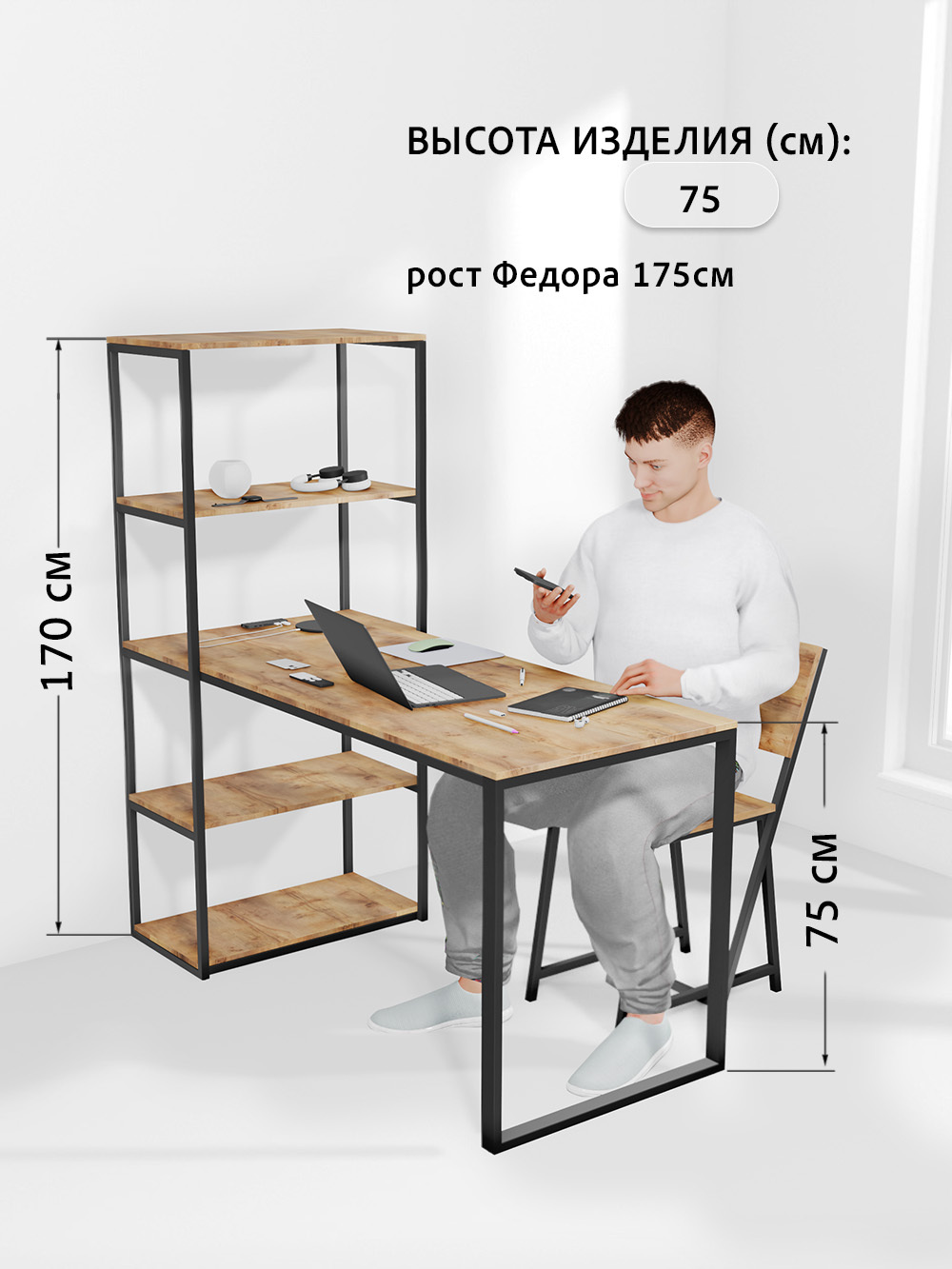 Письменный стол Edward изготовлен в стиле LOFT. Классическая модель компьютерного стола сочетает в себе оригинальный дизайн, практичность и качество. Стол идеально подойдет для работы и учебы, как письменный стол для школьника, парта для школьника, стол офисный, модуль для ресепшена и для организации домашнего рабочего пространства. Универсальная конструкция компьютерного стола позволяет менять расположение стеллажа на левую и на правую сторону.Стол компьютерный Эдвард комбинированный с открытой стеллажной системой, позволяет создать удобное, эргономичное и функциональное рабочее место на минимальной площади. Стеллаж можно заполнить книгами, учебниками, компьютерными принадлежностями, сувенирами, папками с документами.Металлическая конструкция выполнена из профильной трубы 40х20 мм и 20х20 мм, что позволяет выдерживать нагрузку 180 кг, стол так же усилен траверсой под самой столешницей для дополнительной устойчивости. Столешница изготовлена из высококачественного ЛДСП, специальное ламинированное покрытие делает ее ударопрочной и не царапающейся, а также защищает от влаги. На широкой столешнице можно свободно разместить ноутбук, настольную лампу, письменные принадлежности и другие предметы, необходимые для работы.В комплект к письменному столу идеально подойдут: