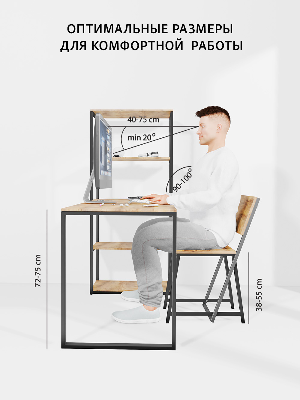 Высота, ширина и глубина подобраны так, чтобы Вам было удобно и комфортно сидеть за столом.Размеры письменного стола: ширина-140см, глубина-60см, высота-75см.Товар продается напрямую от производителя, что гарантирует качество и выгодную цену.