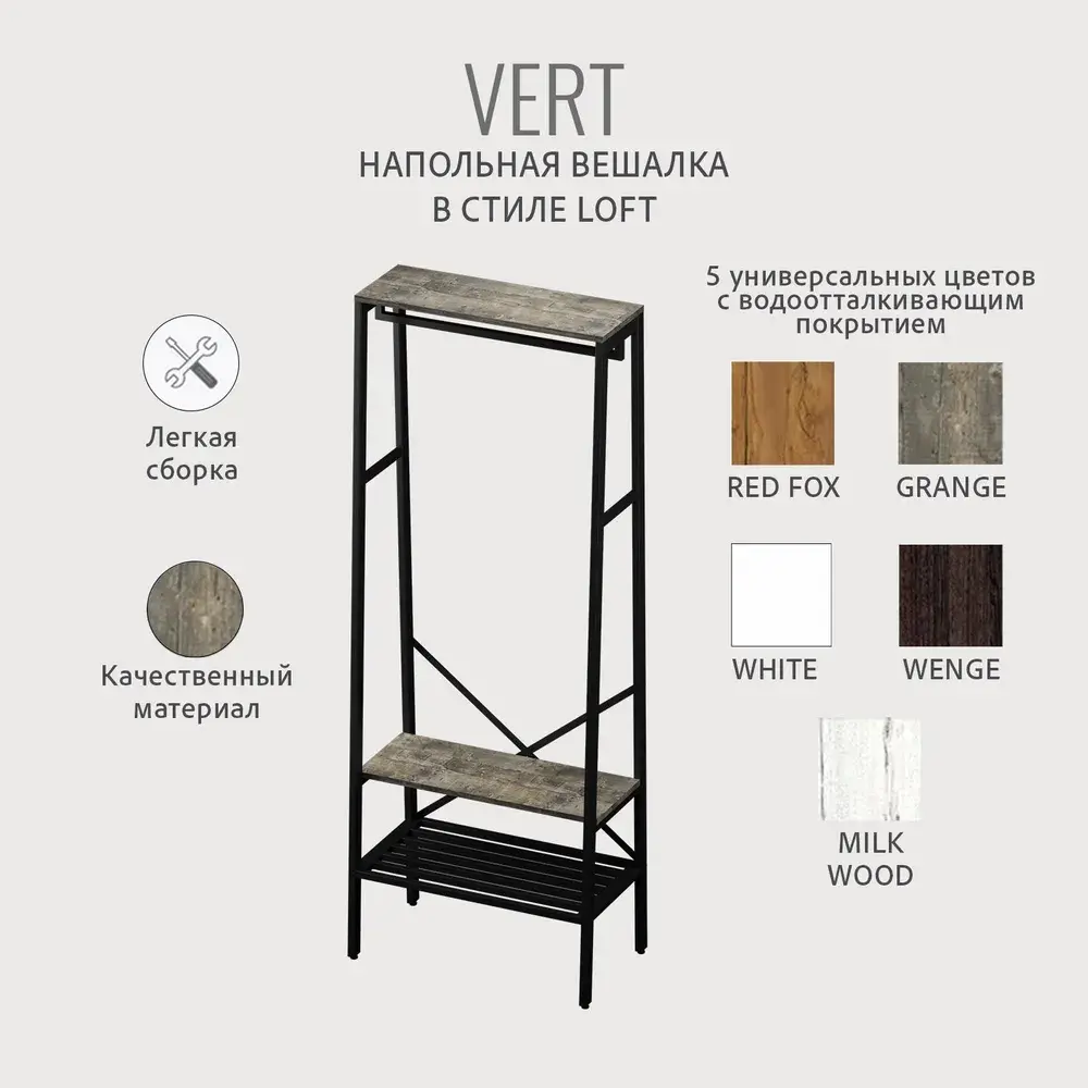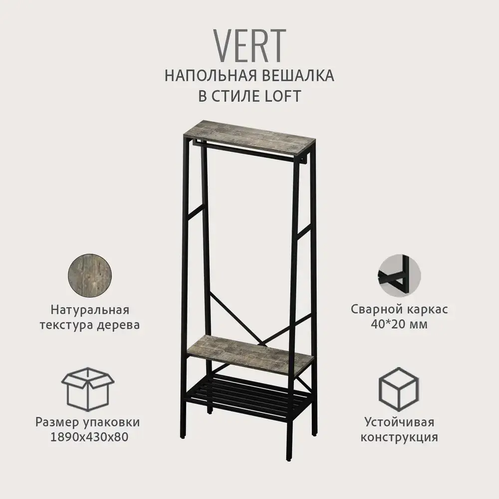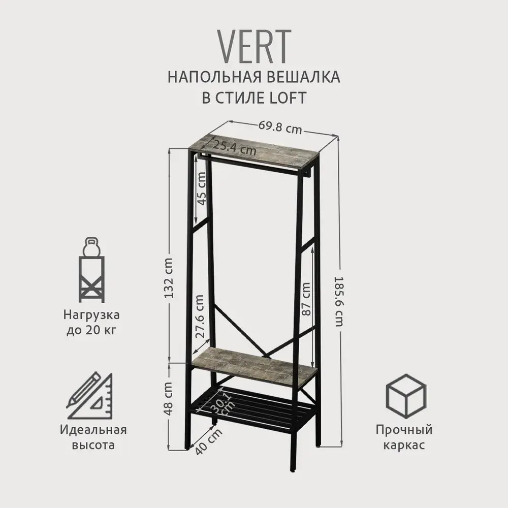 Вешалка напольная VERT в стиле лофт станет отличным дополнением к мебели для дома. Идеально подходит для прихожей, обеспечивая удобное хранение вещей. Эта гардеробная система хранения включает в себя стеллаж напольный с металлическими и деревянными элементами, предусматривающими полку для обуви и штангу для одежды.Вешалка для одежды позволяет разместить большое количество предметов гардероба, поддерживая порядок. Шкаф для одежды может заменить собой полноценный шкаф пенал или шкаф пенал с полками в прихожую. Стойка для одежды добавят пространства для размещения аксессуаров.