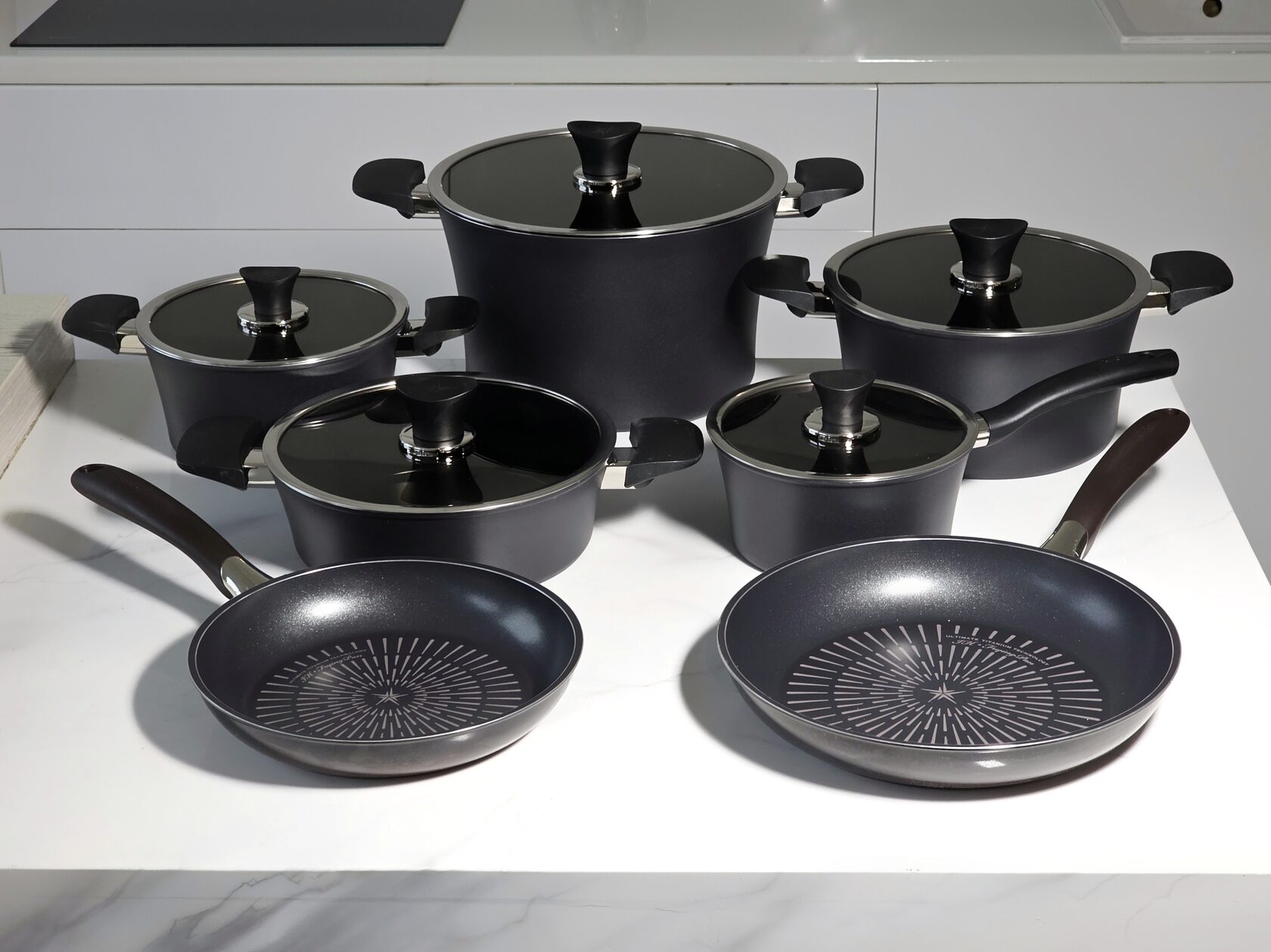 Комплект посуды Happycall Mono + Plasma Prime — идеальный баланс красоты, прочности и комфорта.Создавайте на своей кухне блюда ресторанного уровня и наслаждайтесь процессом с комплектом Happycall Mono + Plasma Prime. Эта посуда из Южной Кореи объединяет изысканный дизайн, передовые материалы и долговечность, чтобы готовка приносила удовольствие каждый день.Кастрюли Happycall Mono — стиль и универсальность.Коллекция Mono — это чёрная керамическая классика с переливающимся блеском, которая гармонично вписывается в любую кухню.Керамическое антипригарное покрытие экологично (PFOA FREE), готовьте без масла — блюда не пригорают и сохраняют пользу.Подходят для всех плит, включая индукционные, а также безопасны и удобны в хранении благодаря низким ручкам крышек.Крышки со скрытым пароотводом сохраняют эстетику и помогают блюдам «дышать».Бакелитовые ручки кастрюль не нагреваются, делая готовку комфортной.Размеры для любых задач:18 см (1,8 л) — ковш для соусов и каш,20 см (2,5 л) — универсальная кастрюля для гарниров,24 см низкая (3 л) — для тушения и запеканок,24 см (4,6 л) — супы и рагу,28 см (8,5 л) — объёмные блюда и праздники.Сковороды Happycall Plasma Prime — мощь титана и нержавеющей стали.Plasma Prime — это сковороды для тех, кто хочет идеальный результат при жарке и тушении.Изготовлены из сплава титана, нержавеющей стали и алюминия — прочные, безопасные и долговечные.Экологичное покрытие (PFOA FREE, PFOS FREE) позволяет готовить с маслом или без него — на ваш выбор.Утолщённые стенки держат тепло дольше и обеспечивают равномерную прожарку.Подходят для всех плит, включая индукционные, и рассчитаны на долгие годы активного использования.Стильный современный дизайн придаёт кухне премиальный вид.Размеры на любой случай:20 см — для завтраков и небольших порций,24–28 см — универсально на каждый день,30–32 см — простор для семьи и гостей.Качество, подтверждённое стандартами.ISO 9001 — гарантированное качество,ISO 14001 — экологичность,Проверено на тяжёлые металлы и инфракрасное излучение,0% PFOA и PFOS — абсолютная безопасность.Happycall Mono + Plasma Prime — это комплект, который делает вашу кухню профессиональной и красивой. Готовьте без ограничений, смело экспериментируйте и наслаждайтесь каждым этапом — от приготовления до подачи.