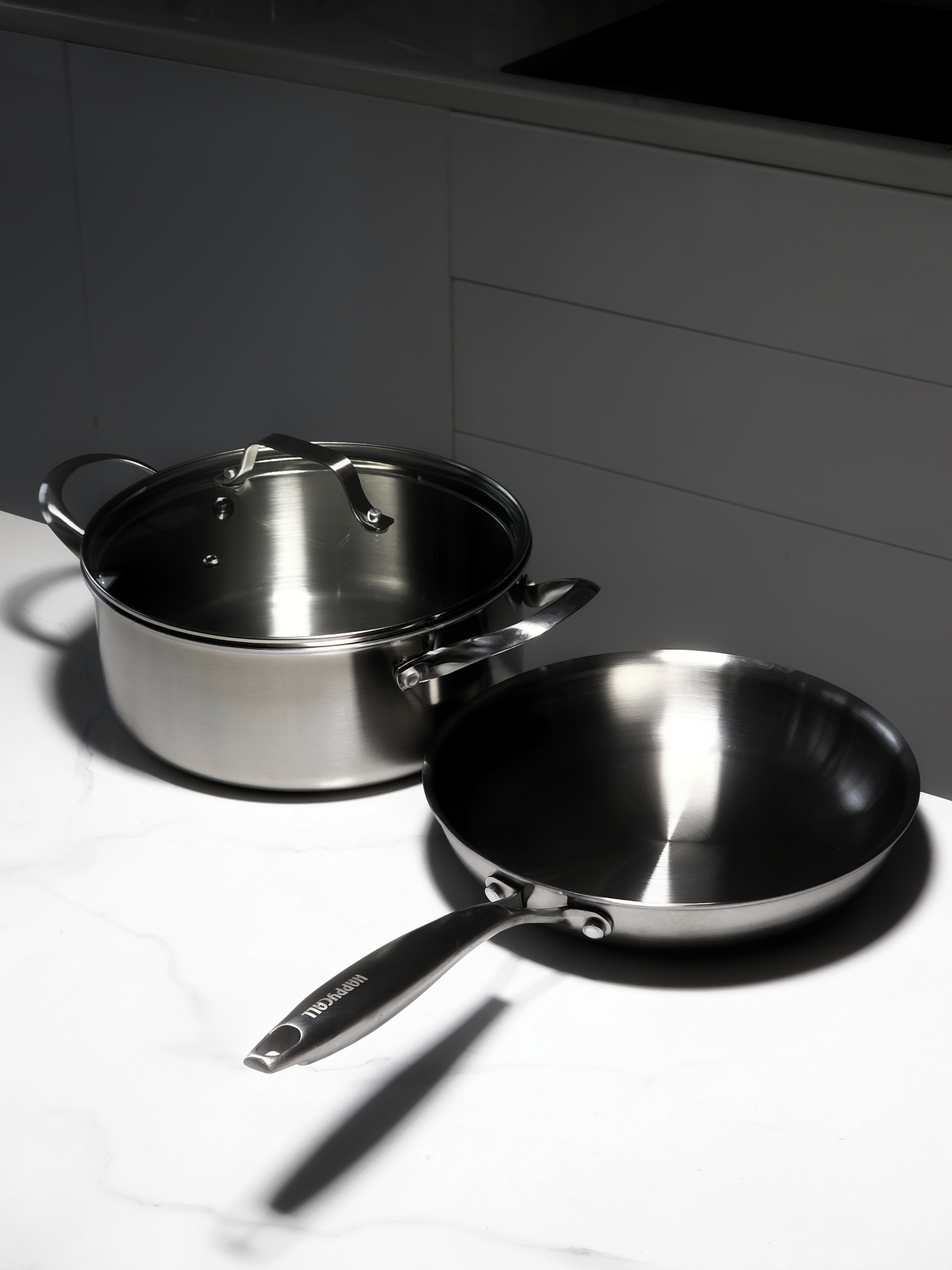 Готовить — значит наслаждаться процессом.Посуду из коллекции Happycall Stay делают из нержавеющей стали 304 с содержанием никеля 18⁄10 — материала, который ценят профессиональные повара по всему миру. Он не впитывает запахи и не окисляется, поэтому блюда сохраняют чистый вкус, каким его задумал рецепт.Секрет идеального нагрева. Благодаря технологии 3Ply (три слоя металла: сталь — алюминий — сталь) тепло распределяется равномерно по всей поверхности. Блюда не пригорают в центре и не остаются сырыми по краям. Это значит, что стейк получится сочным, соус — шелковистым, а овощи сохранят текстуру и цвет.Универсальность на кухне.Коллекция подходит для всех типов плит, включая индукцию, а также для приготовления в духовке. Это удобно: можно обжарить мясо на плите, а потом довести его до готовности в духовке в той же посуде, без лишней пересадки.Только нужные предметы.В наборе нет случайных кастрюль, которые будут пылиться. Здесь собраны самые востребованные размеры:сковорода 24см;кастрюля 24 см — идеальна для первых блюд;Инвестиция на десятилетия.В этой посуде можно использовать даже металлические аксессуары — лопатки, венчики и щипцы не повредят поверхность. Она не боится частого мытья и активного использования. Это покупка, которая служит десятилетиями, а не на один сезон.Happycall Stay — это коллекция для тех, кто ценит эстетику, комфорт и безупречное качество. Это не просто посуда, а инвестиция в удовольствие от готовки и уверенность в результате.Сертифицировано по международным стандартам ISO 9001 и ISO 14001