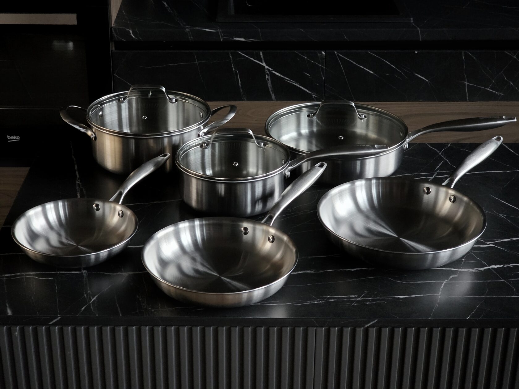 Готовить — значит наслаждаться процессом.Посуду из коллекции Happycall Stay делают из нержавеющей стали 304 с содержанием никеля 18⁄10 — материала, который ценят профессиональные повара по всему миру. Он не впитывает запахи и не окисляется, поэтому блюда сохраняют чистый вкус, каким его задумал рецепт.Секрет идеального нагрева. Благодаря технологии 3Ply (три слоя металла: сталь — алюминий — сталь) тепло распределяется равномерно по всей поверхности. Блюда не пригорают в центре и не остаются сырыми по краям. Это значит, что стейк получится сочным, соус — шелковистым, а овощи сохранят текстуру и цвет.Универсальность на кухне.Коллекция подходит для всех типов плит, включая индукцию, а также для приготовления в духовке. Это удобно: можно обжарить мясо на плите, а потом довести его до готовности в духовке в той же посуде, без лишней пересадки.Только нужные предметы.В наборе нет случайных кастрюль, которые будут пылиться. Здесь собраны самые востребованные размеры:сковороды 20, 24 и 28 см — для завтрака, обеда и большой семьи;сотейник с крышкой 28 см — для тушения, соусов и пасты;ковш 20 см — идеален для каши, соусов и крем-супов;кастрюля 24 см — для супов, бульонов и заготовок.Инвестиция на десятилетия.В этой посуде можно использовать даже металлические аксессуары — лопатки, венчики и щипцы не повредят поверхность. Она не боится частого мытья и активного использования. Это покупка, которая служит десятилетиями, а не на один сезон.Happycall Stay — это коллекция для тех, кто ценит эстетику, комфорт и безупречное качество. Это не просто посуда, а инвестиция в удовольствие от готовки и уверенность в результате.Сертифицировано по международным стандартам ISO 9001 и ISO 14001