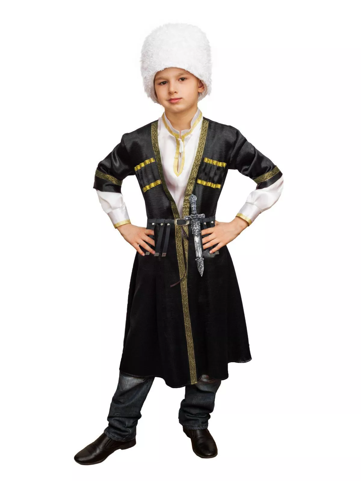 В костюм входит: шапка, халат, рубаха, ремень, кинжал.