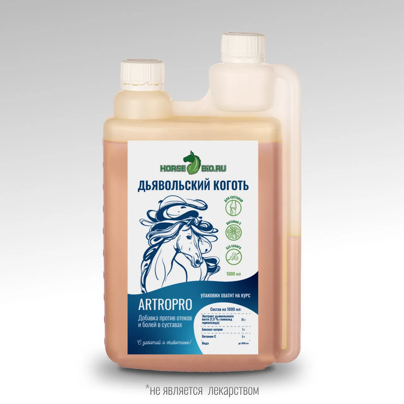 Чтобы купить Эликсир ДЬЯВОЛЬСКИЙ КОГОТЬ ArtroPro с витамином С на водной основе для лошадей, 1000 мл 01-03AP1000 оптом по цене 1260 руб., свяжитесь с поставщиком. Компания поставщик — Horse-Bio (ИП «Труберг Екатерина Александровна») из города Химки (Московская область). Доставка возможна самовывоз, транспортной компанией, курьером. Способы оплаты: безналичная оплата, наличными.