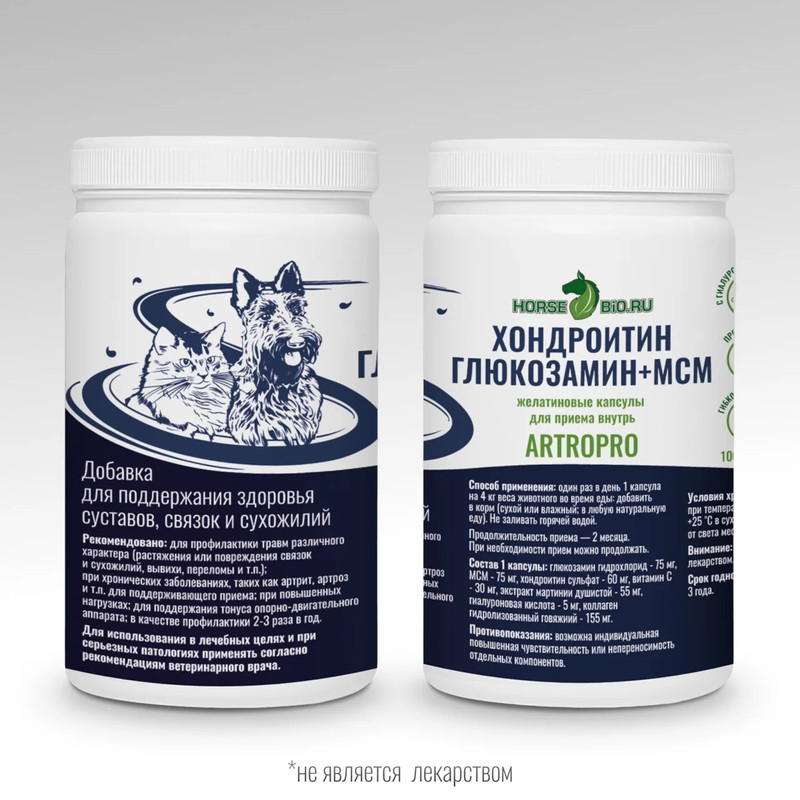 Чтобы купить Желатиновые капсулы Хондроитин+Глюкозамин+МСМ ArtroPro для мелких собак и кошек, 100 шт 11-36AP0100 оптом по цене 809 руб., свяжитесь с поставщиком. Компания поставщик — Horse-Bio (ИП «Труберг Екатерина Александровна») из города Химки (Московская область). Доставка возможна самовывоз, транспортной компанией, курьером. Способы оплаты: безналичная оплата, наличными.